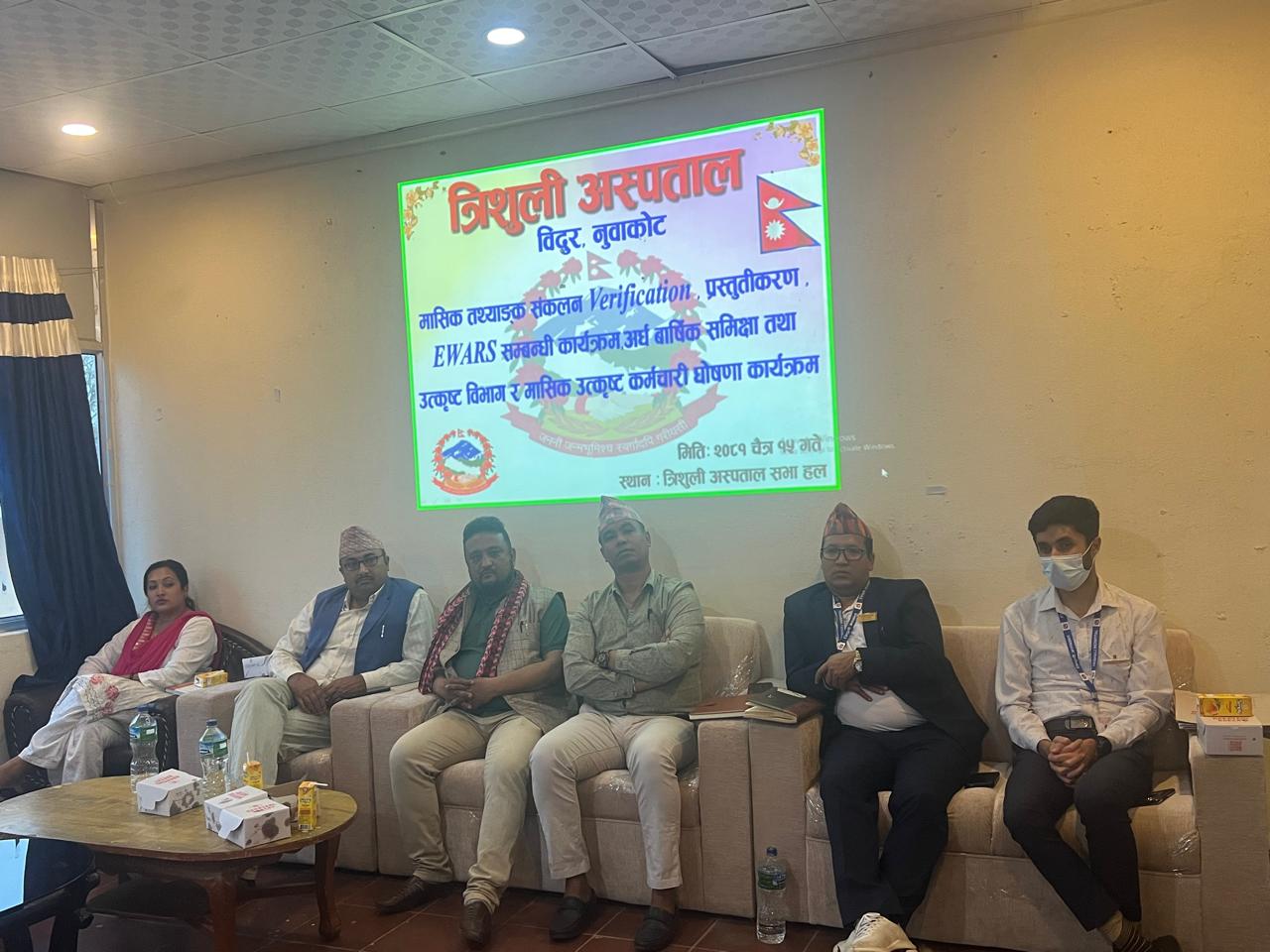 विदुर–नुवाकोट जिल्ला अस्पताल त्रिशूलीले कर्मचारी तथा शाखा प्रोत्साहन कार्यक्रम सन्चालन गरेको छ । कार्य प्रस्तुतीको मुल्यांकनका आधारमा अस्पतालका कर्मचारी र शाखालाई पुरस्कृत गरिएको छ ।