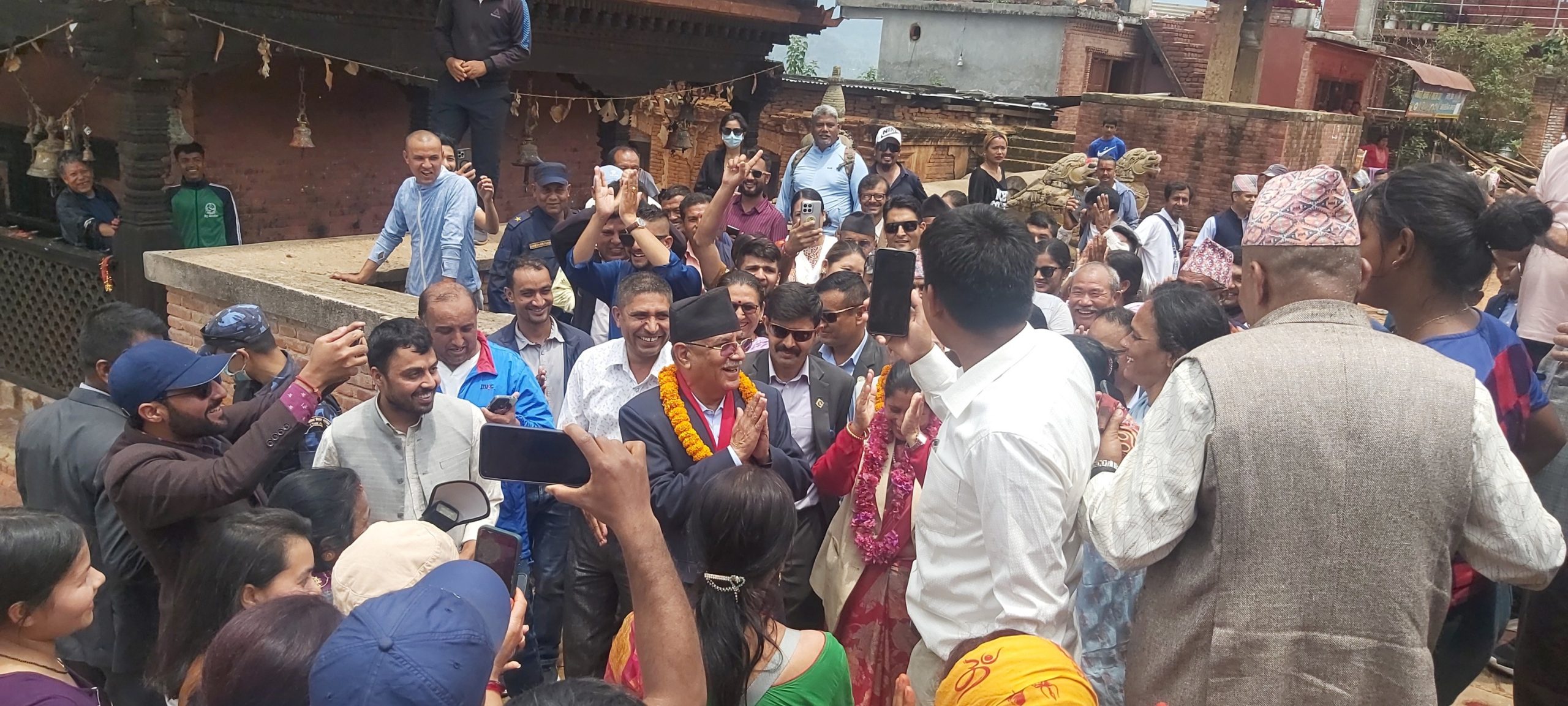 भूकम्पपछिको पुनर्निर्माणमा ढिलाई भइरहेका बेला अध्यक्ष प्रचण्डले आफु प्रधानमन्त्री भएका वेला आफ्नै अग्रसरतामा दरबार पुनर्निर्माणको काम अगाडि बढाइएको दावी गरे । उनले दरवार र सो स्थान आसपासमा रहेका पुरातात्विक वस्तुका सम्वन्धमा स्थानीयवासीसंग अन्र्तक्रियासमेत गरे ।