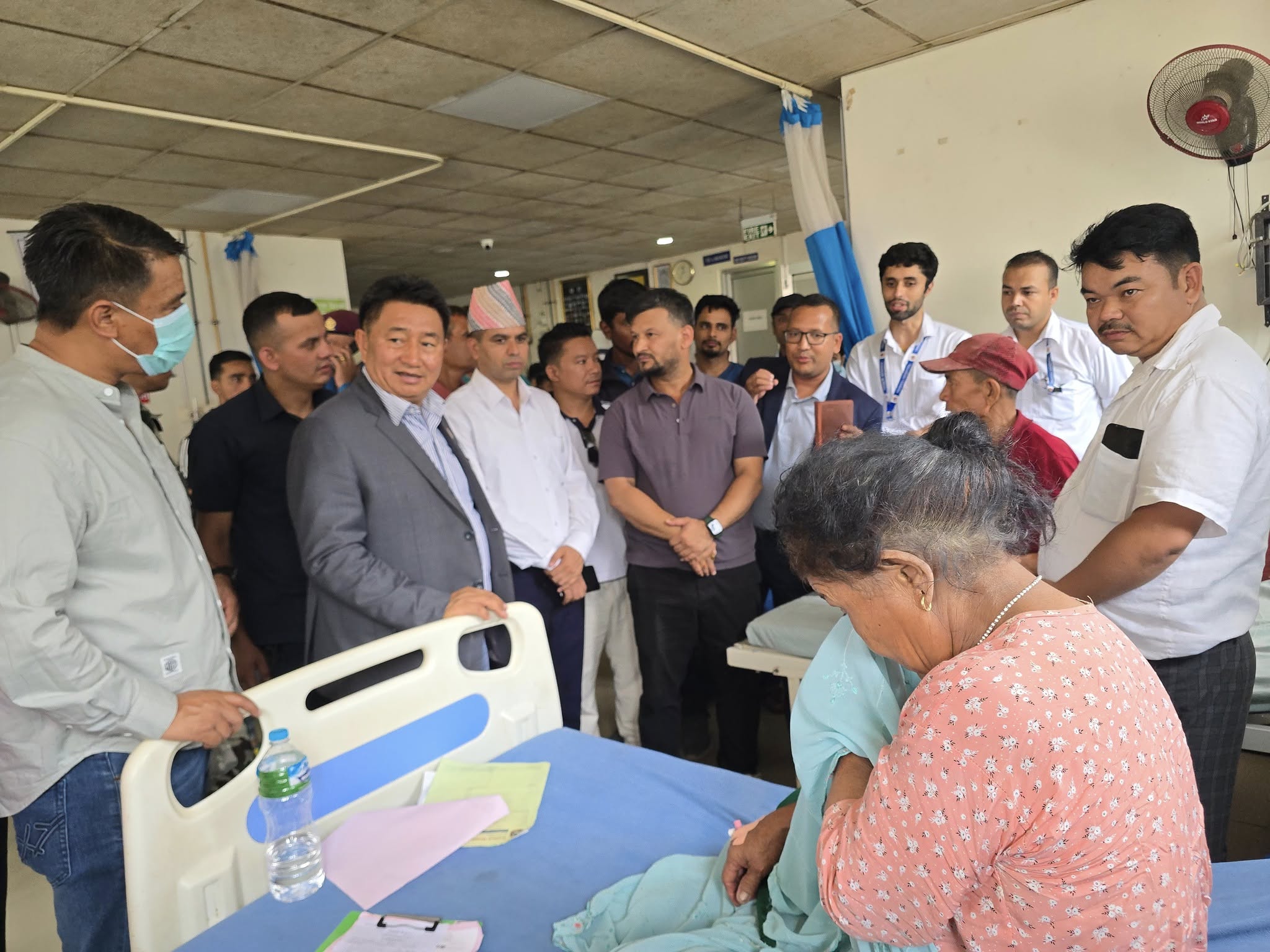 हेलिकप्टरमार्फत उद्धार गरिएका दम्पत्तिलाई त्रिशूली अस्पतालमा पुगेर भेटे