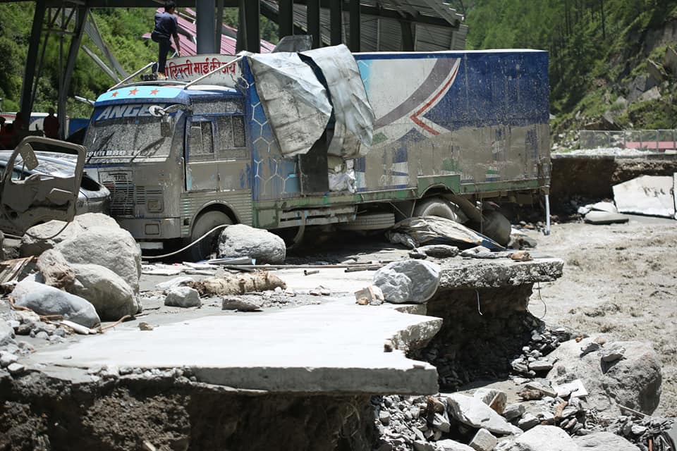 नेपाल–चीन सिमाना ल्हेन्दे खोलामा आएको लेदोसहितको बाढी त्रिशूलीमा मिसिदा सोे उग्ररुप लिई नेपाल–चीन जोड्ने पक्कि मोटरेवल पुल ध्वस्त भएको छ । रसुवागढी–केरुङ जेड्ने नाका जोड्ने बाटो हाल अवरुद्ध भएको छ ।
