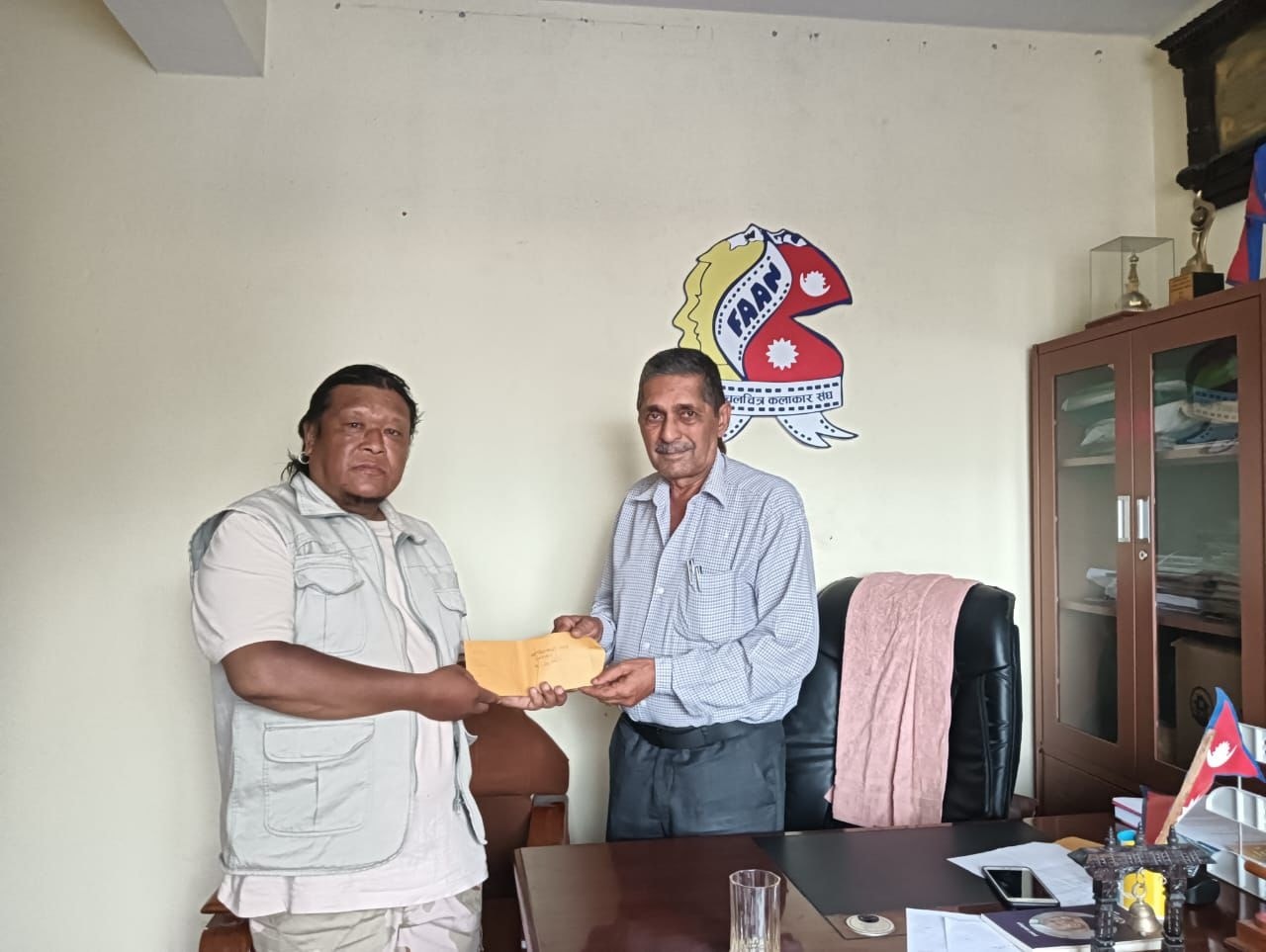 -वोर्डका अध्यक्ष डिसी र संघका अध्यक्ष निरौलाद्वारा हस्तान्तरण