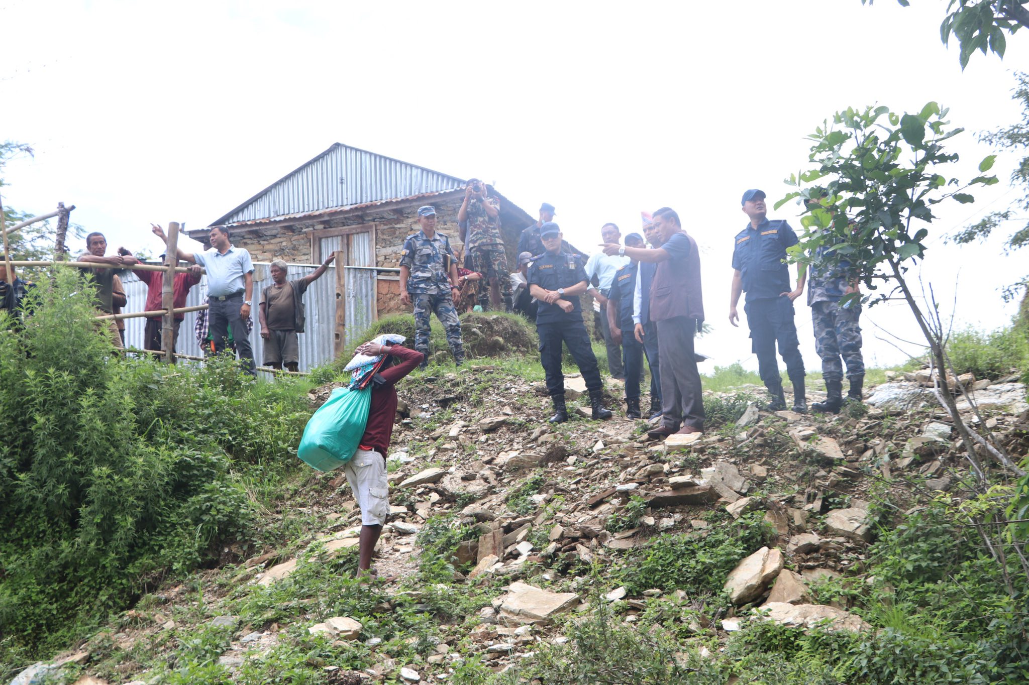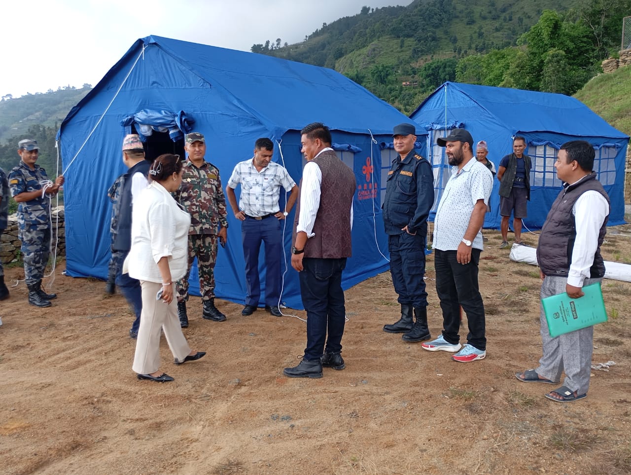 समितिका अध्यक्ष तथा प्रजिअ घिमिरेसहित सुरक्षाकर्मीसहितको टोलीले पहिरोग्रस्त क्षेत्रको अवलोकन गर्दै धनजनको सुरक्षामा प्रभावकारिता अपनाइएको जनाएका छन् । स्थानीय काउलेडाडास्थित निर्कुभुमे आधारभुत बिद्यालयको चौरमा अस्थायी घर (टेन्ट) निर्माण समेत गरिएकोछ ।