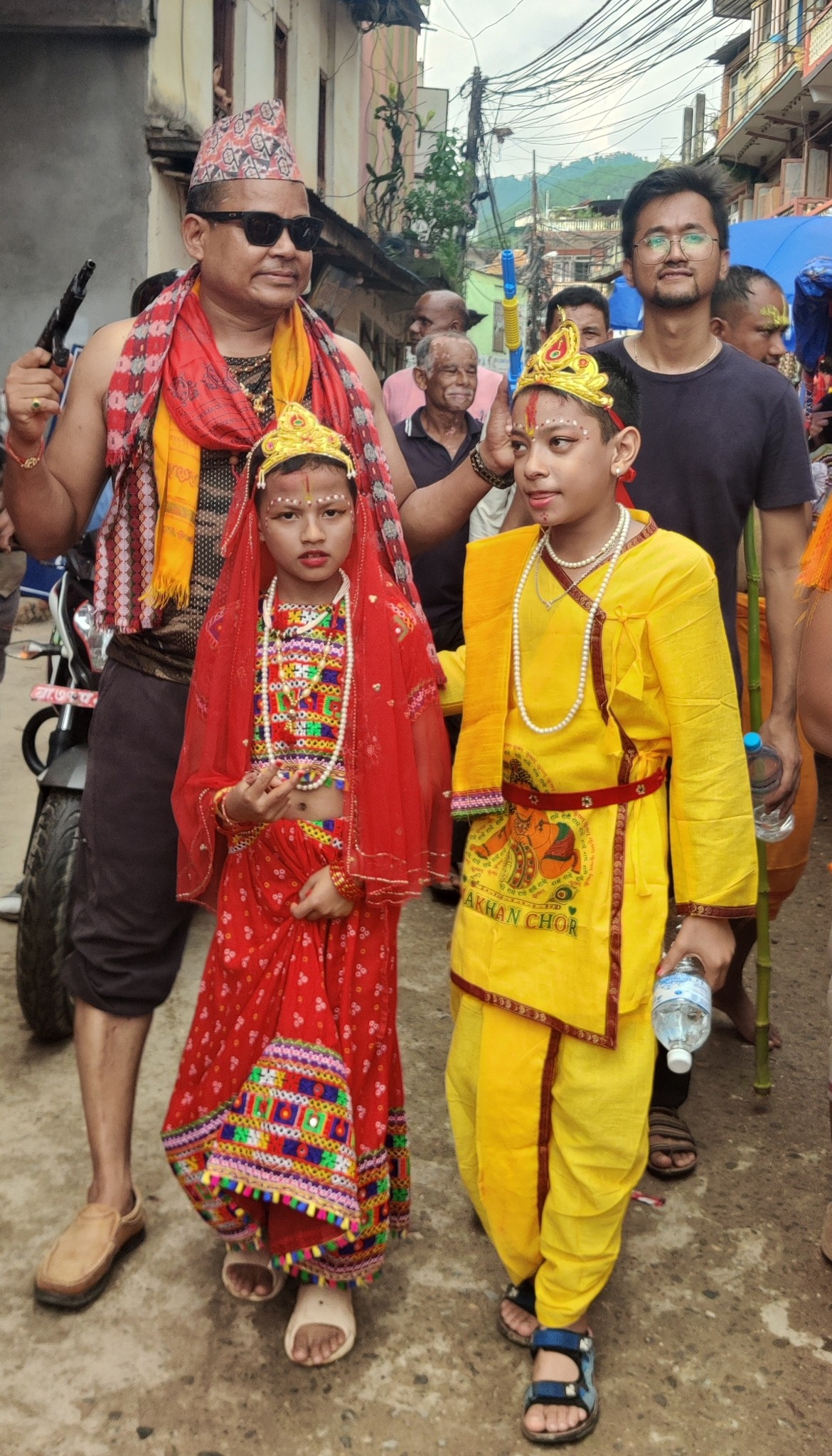वडाध्यक्ष कायस्थलाई उनका छोरा दियान कायस्थ भने भगवान कृष्णको भेषमा प्रस्तुत भए । वडाध्यक्षका वावुुछोराले समाजमा सकारात्मक तथा खराव प्रवृत्तिका मानिसहरु पनि हुन्छन, सचेत रहि जविनयापन गर्नु पर्ने सन्देश दिएको वडाध्यक्ष दीपक कायस्थले वताए ।