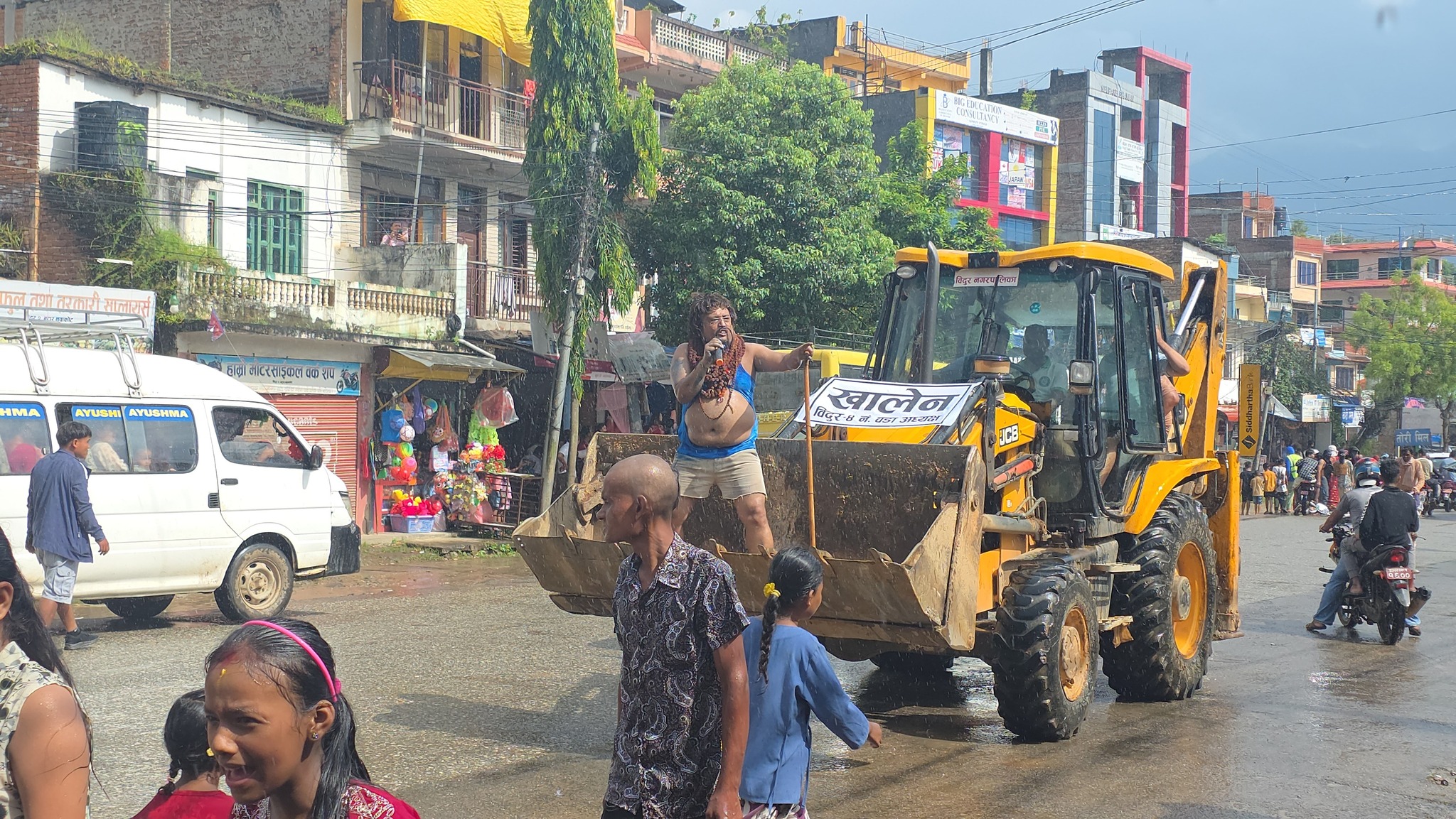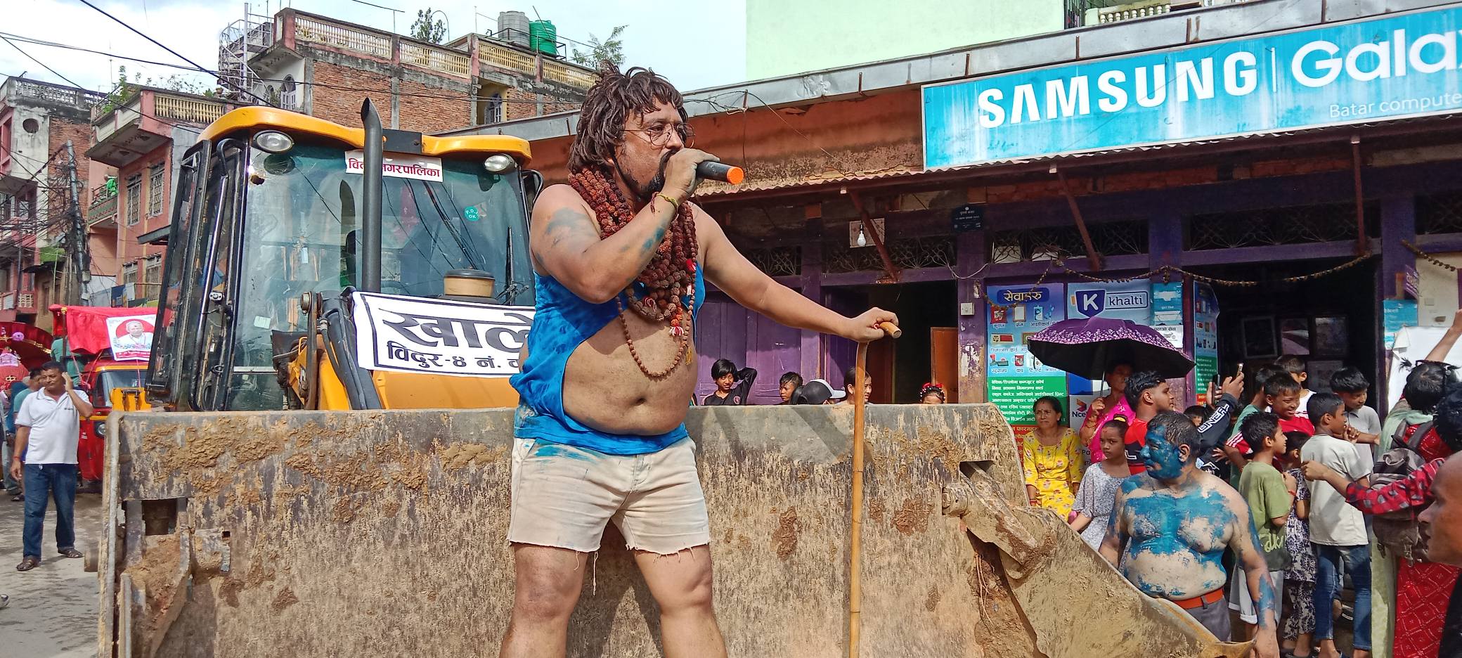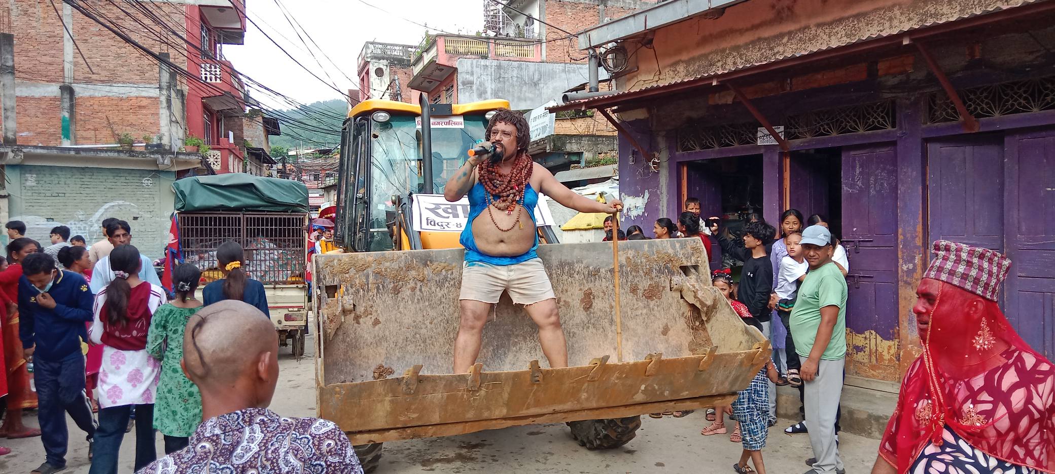 उनले यस पटक विकासप्रेमी नेता खालेनको नाममा सांकेतिक प्रदर्शन गरे । उनले सडकमा आफ्नो कलात्मक झांकीसहित आफुलाई खालेनको रुपमा उभ्याउंदै विभिन्न प्रहसन गरे ।