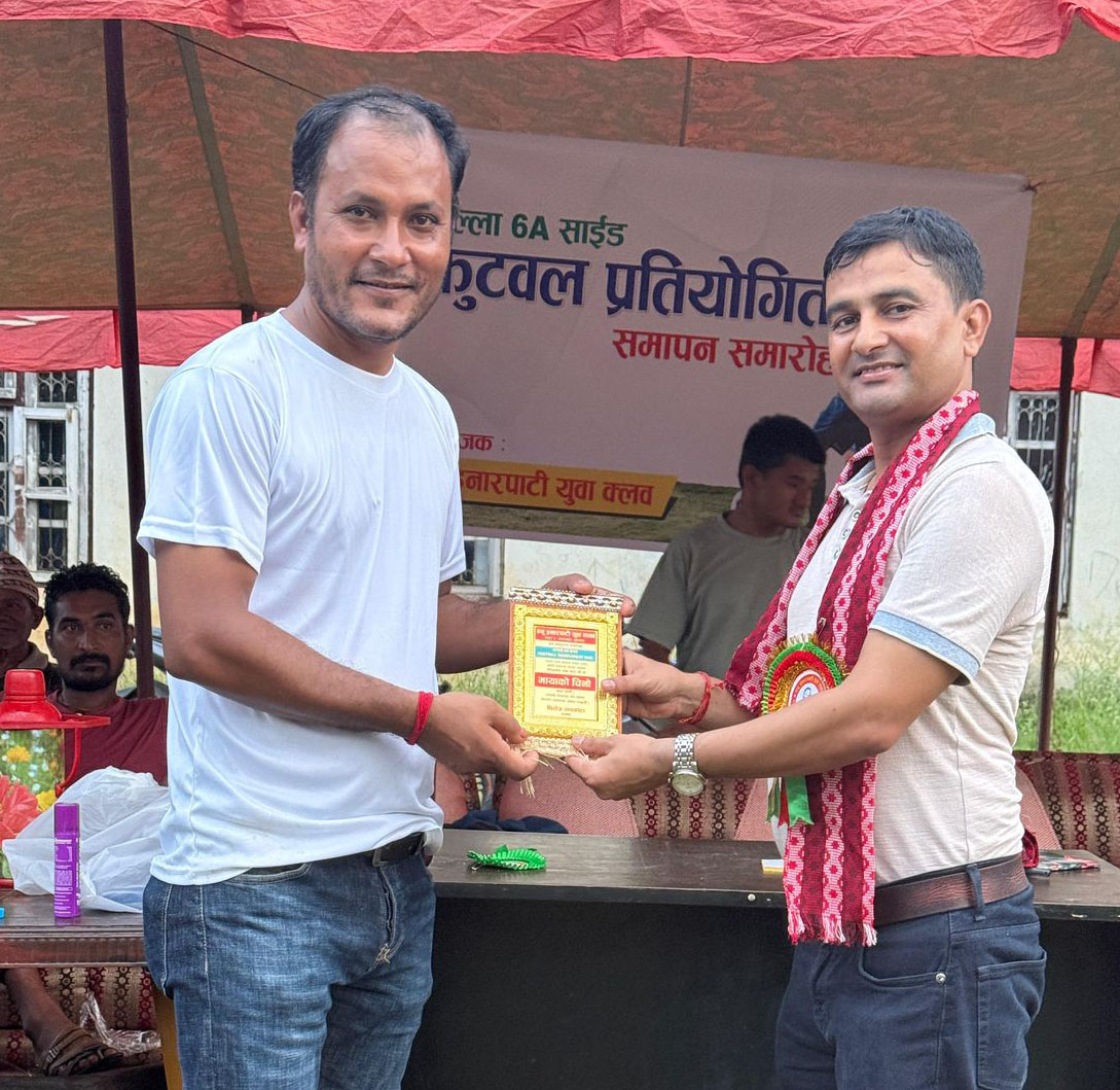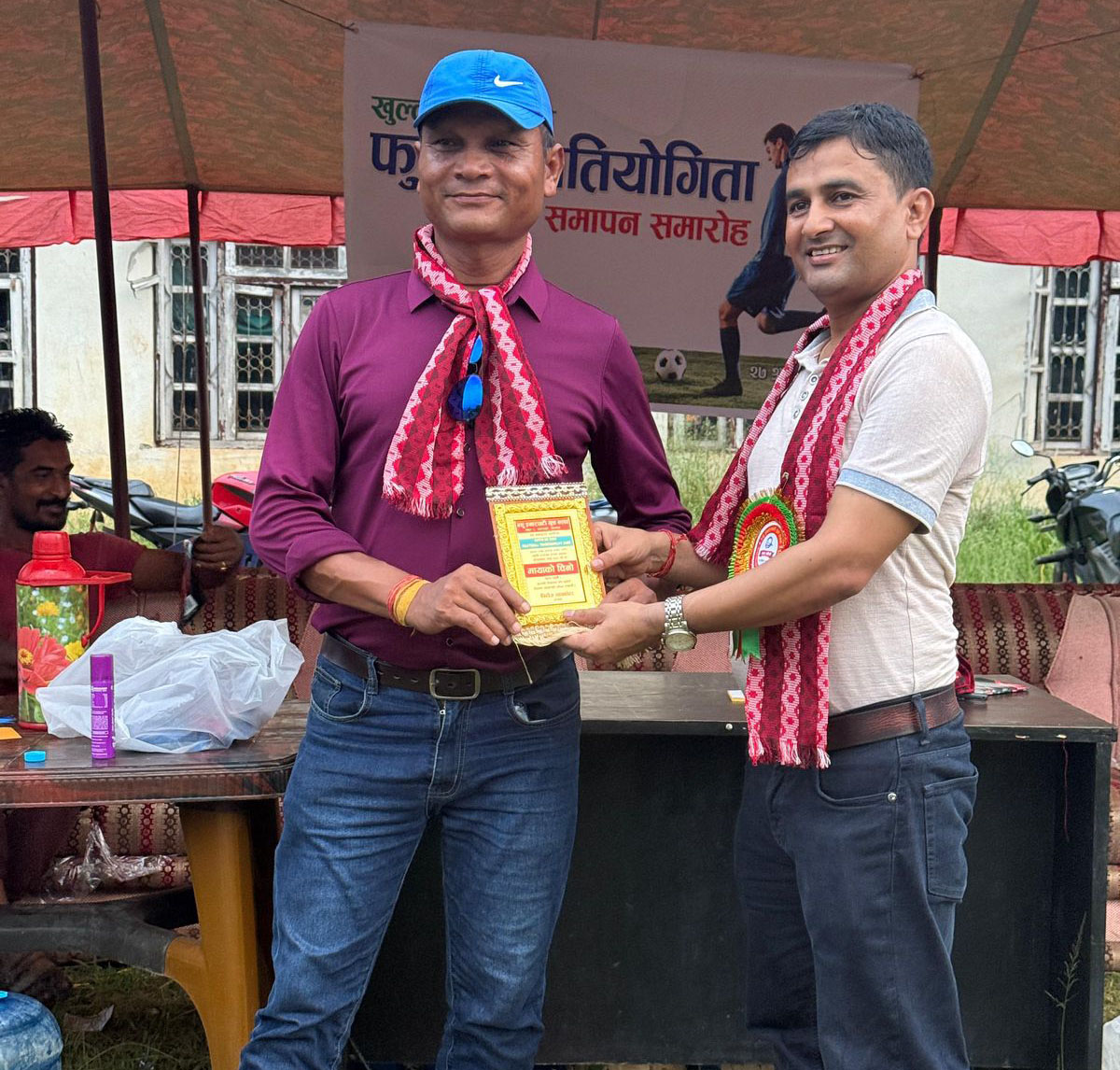 उनले खेलवाट मानव जीवनमा सकारात्मक परिवर्तन हुनुका साथै यसले अनुशासन सिकाउने वताए । पुरस्कार वितरण कार्यक्रममा विदुर ६ का वडा सदस्यहरु रामचन्द्र पौडेल, रुपक कुमाल, फुटवल संघ वागमतिका सदस्य रामकुमार कोइरालालगायते पुरस्कार वितरण गरे ।
