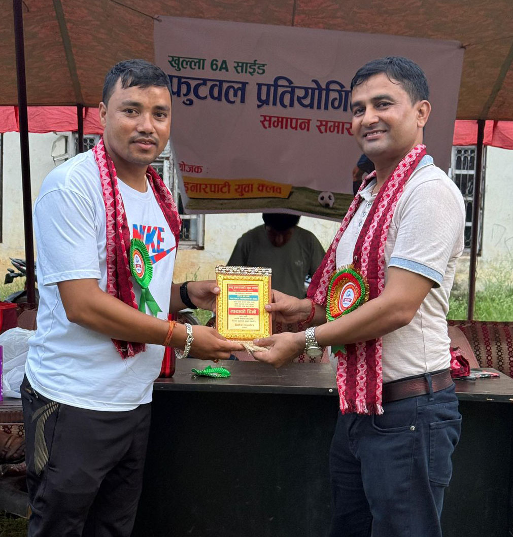 उपाधि विजेता तप्त युवा क्लवका मनिष प्याकुरेल उत्कृष्ट गोलरक्षक र न्यु इनारपाटी युवा क्लवका प्रदीप हमालले हाइ स्कोररको पुरस्कार थापे । विजेता तथा उपविजेतालाई विदुर नपा ६ का वडाध्यक्ष श्यामकृष्ण चालिसेले पुरस्कार तथा प्रमाण पत्र प्रदान गरे ।