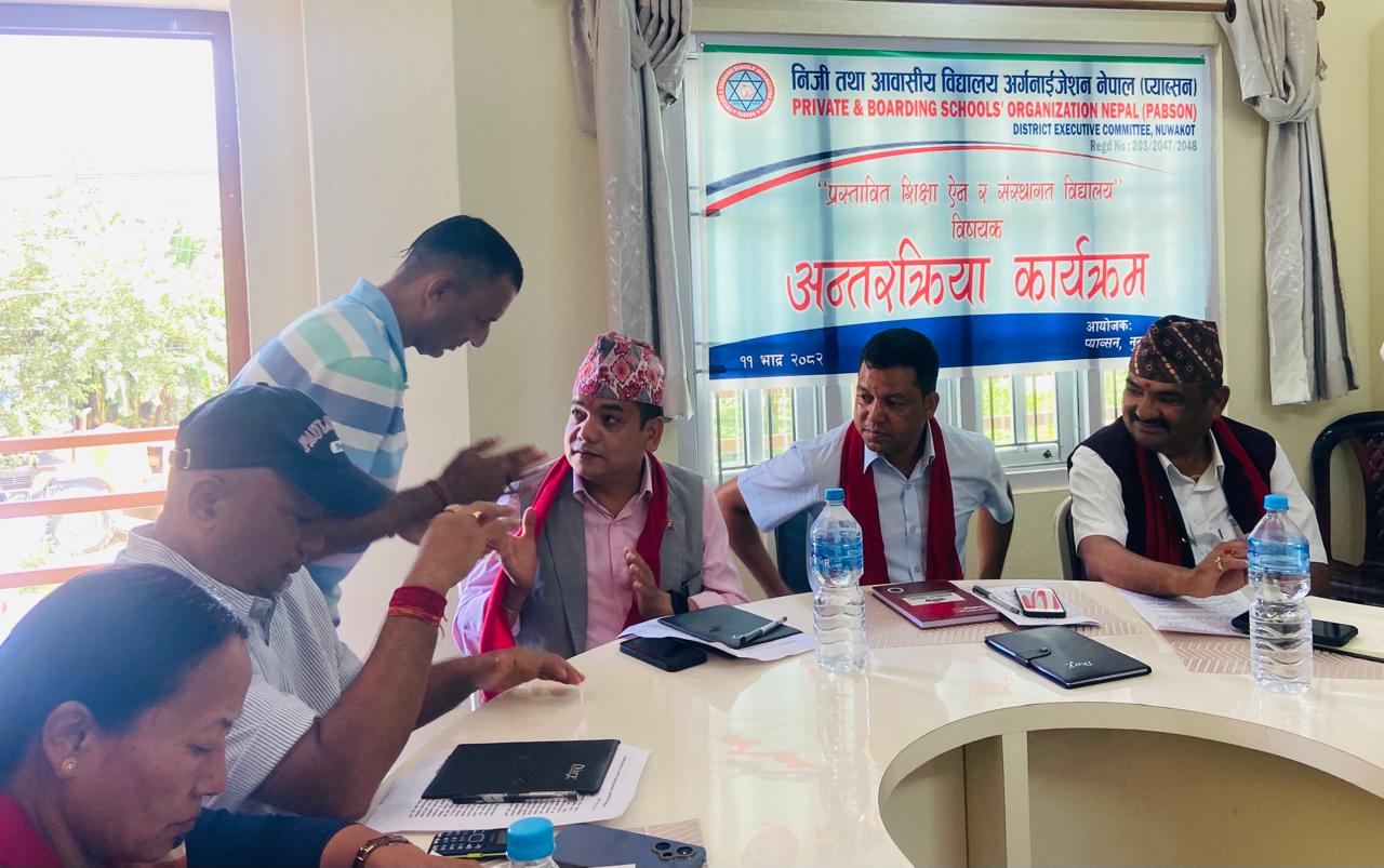 प्याव्सन नुवाकोटले सरोकारवालाहरुवीच प्रस्तावित शिक्षा ऐन र संस्थागत विद्यालयका चुनौतीहरु विषयक अन्तरक्रिया कार्यक्रम सम्पन्न गरेको हो । नुवाकोटमा ३९ निजी विद्यालयहरु रहेका छन् ।
