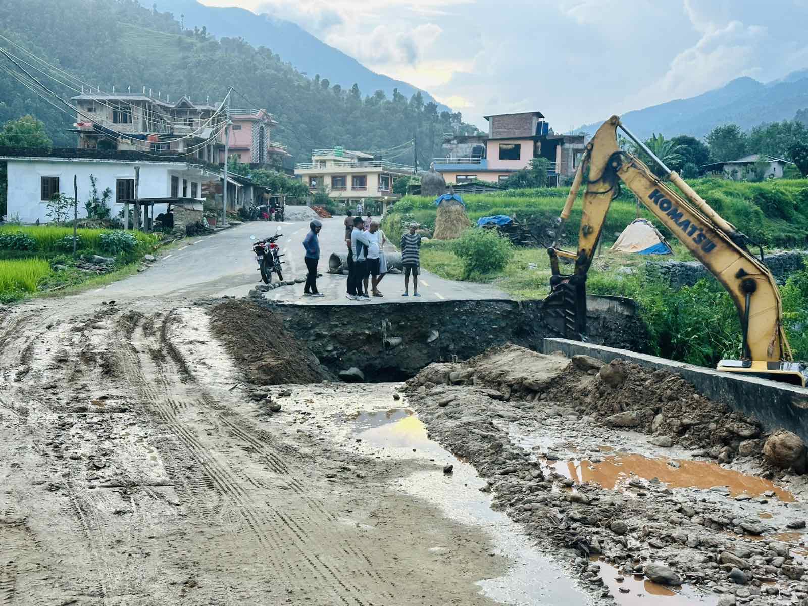 उनका अनुसार अविरल वर्षात्संगै आएको बाढीले सडक नै कटान गरेर यातायात अवरुद्ध भएको थियो । पुलको पश्चिमतर्फ रहेको पिच सडक १० मिटर वगाएको हो ।