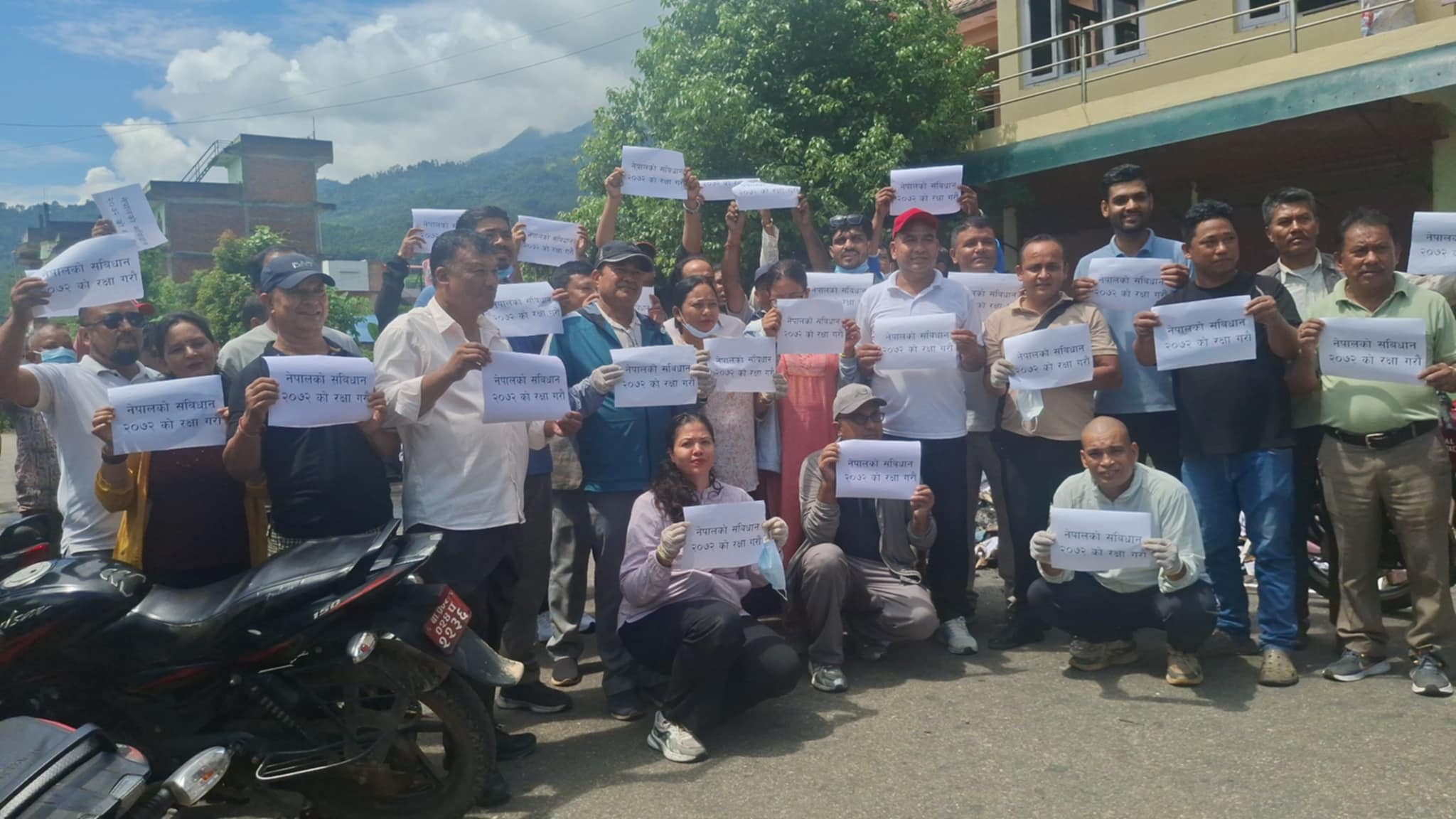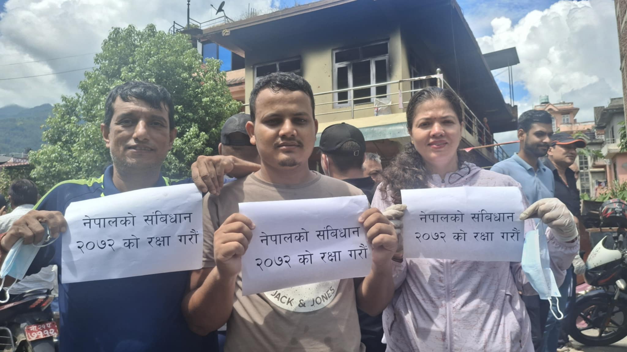 नेपालको संविधान २०७२ को रक्षा गरौं भन्ने प्लेकार्डसहित एमाले केन्द्रीय सदस्य विन्दा ढुंगाना, वागमति प्रदेश कमिटि सदस्य सन्जु पण्डित, एमाले जिल्ला सचिव शिवकुमार चित्रकार, पुर्व उपाध्यक्ष वुद्धिवहादुर प्रधान, उपसचिव राजेन्द्रप्रकाश पाण्डे, नगर कमिटि अध्यक्ष सन्जिववहादुर श्रेष्ठलगायतले नेपालको संविधान २०७२ ले नेपालको प्रतिष्ठा कायम गरेकोले यसको संरक्षण जरुरी रहेको वताए ।