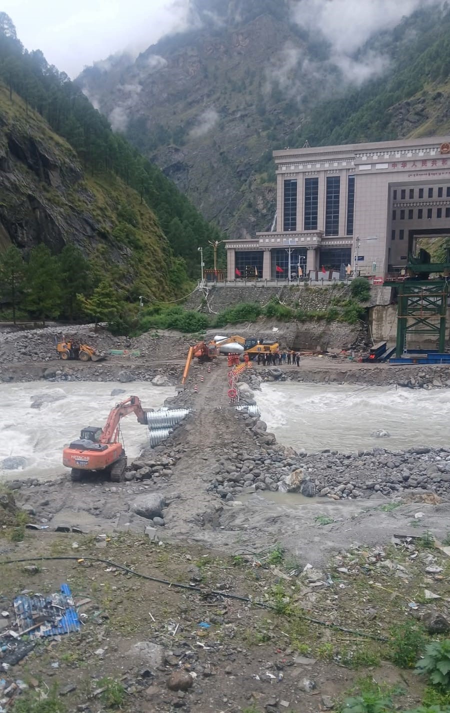 बाढीले नेपाल–चीन सीमा जोड्ने पक्कि मोटरेवल पुल नै बगाएपछि विकल्पमा उक्त स्थानमा चिनीया पक्षले बेलीब्रिज निर्माणका लागि विभिन्न संरचनजा तयार गरिरहेको छ । सुरक्षाकर्मीको निगरानीमा दुवैतर्फको काम द्रुत गतिमा भइरहेको जिल्ला प्रशासन कार्यालयले जनाएको छ । नेपाल र चीनको सिमाना रसुवागढीमा निमार्ण हुन लागेको बेलीबृज निमार्णको काम चीन सरकारले आज बाट नेपाल तर्फ पनि सुरु गर्ने जिल्ला प्रशासन कार्यालय रसुवाले जनाएको छ ।