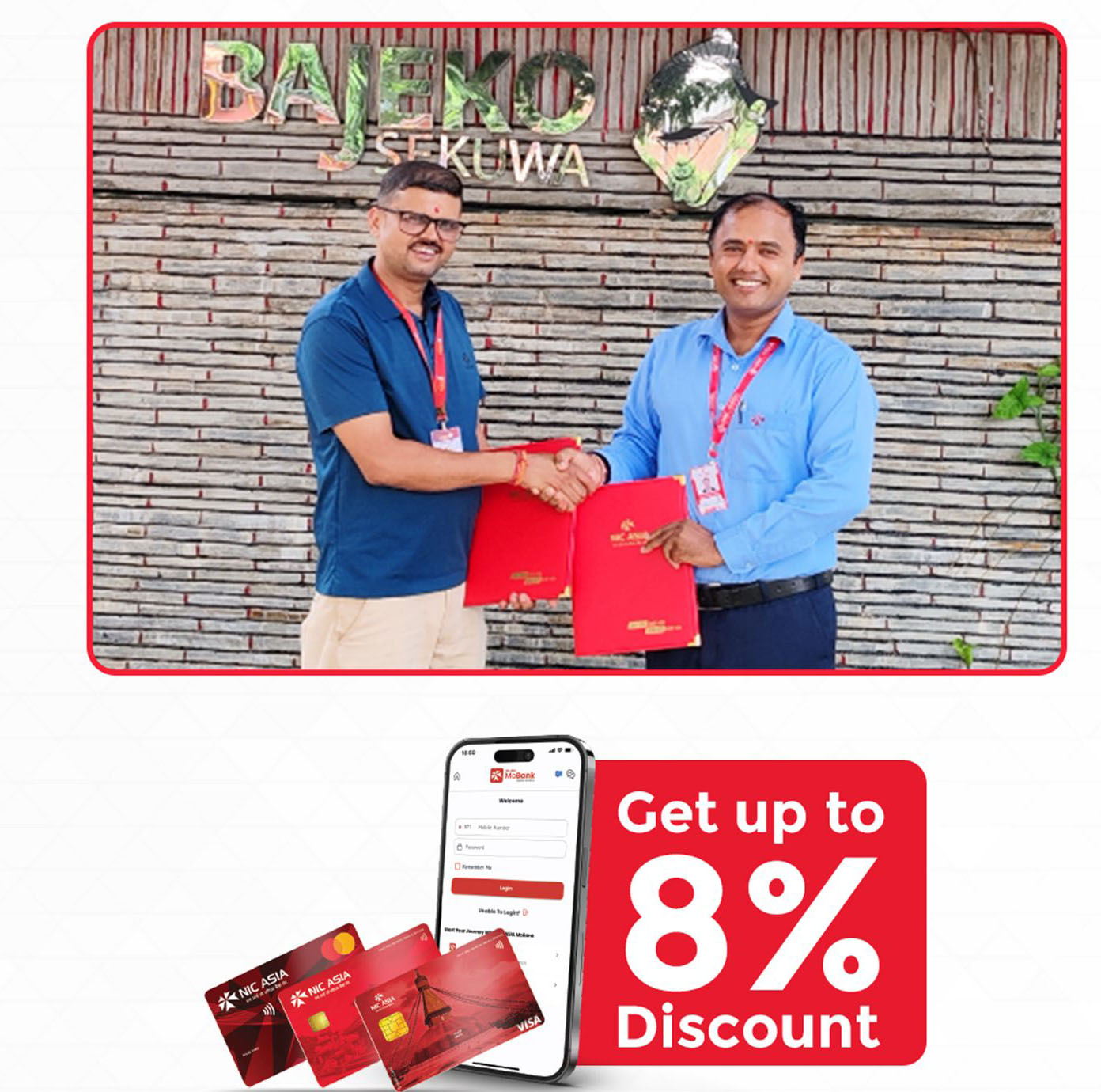 बैंकको वट्टार शाखा प्रमुख पुरुषोत्तम सापकोटा र बाजेका सेकुवा नुवाकोटको आधिकारीक कम्पनी नुवाकोट हस्पिटालिटि फुड्स प्रालिका प्रबन्ध निर्देशक पवन नेपालले संयुक्त रुपमा हस्ताक्षर गरि उक्त होटेलमा ग्राहकहरुले कुल विल रकममा ८ प्रतिशत छुट पाउने भएका हुन् ।