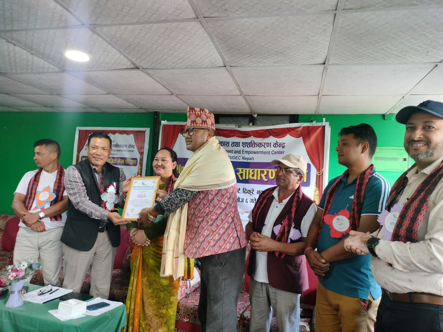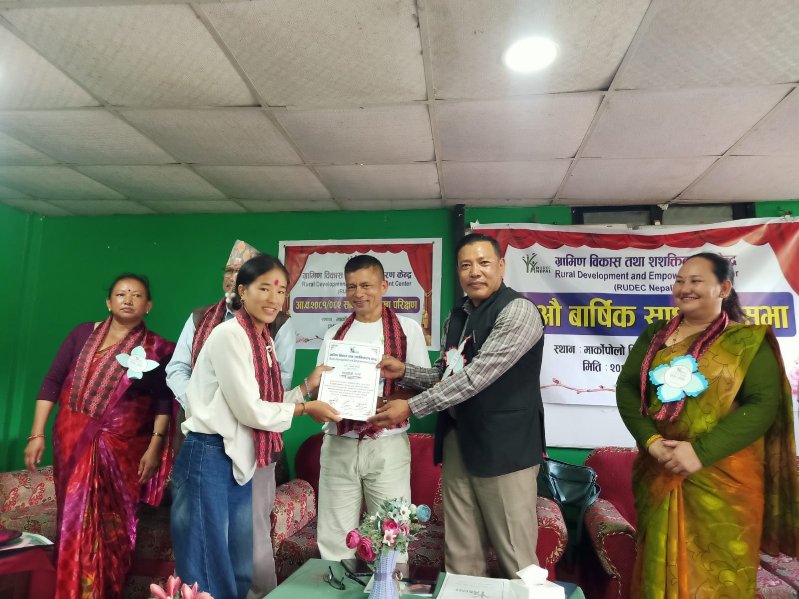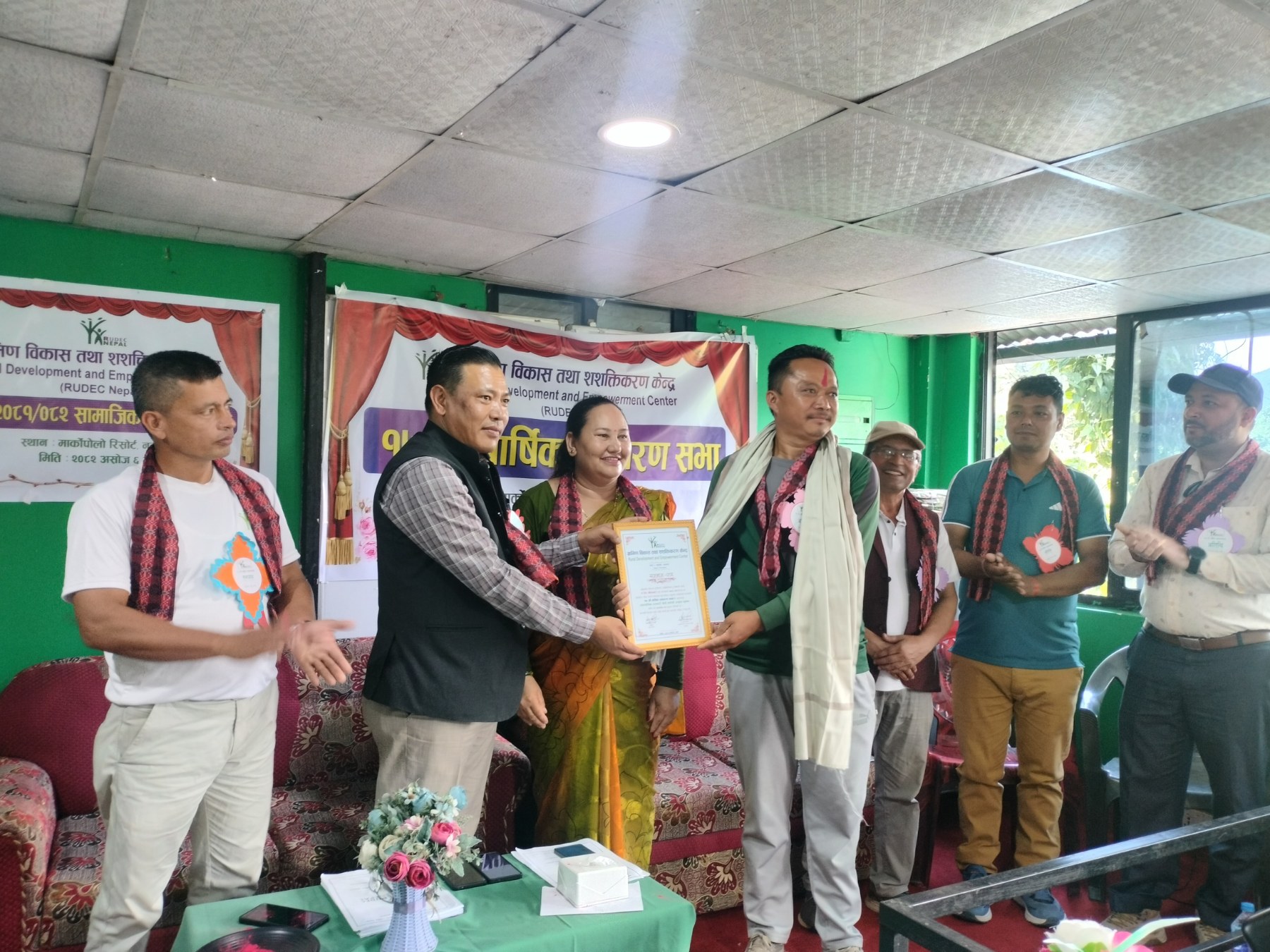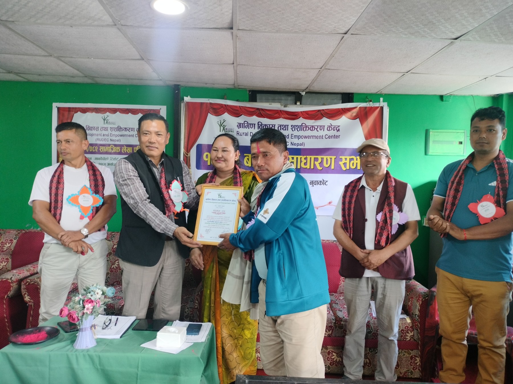 ग्रामीण विकास तथा सशक्तिकरण केन्द्र नेपाल (रुडेक नेपाल)ले आफ्नो १७ औ वार्षिक साधारण सभाको अवसरमा बिद्यालयहरुलाई दोसल्ला ओढाउनुका साथै कदरपत्रद्धारा सम्मान गरेको हो । यसका साथै उत्कृष्ट किसान र संस्थाको उत्कृष्ट कर्मचारीलाई सम्मान र संस्थाको सहयोगमा अध्ययन गरी कक्षा १२ उत्तिर्ण भएका बिद्यार्थीहरुको बिदाई, गरिएको छ ।