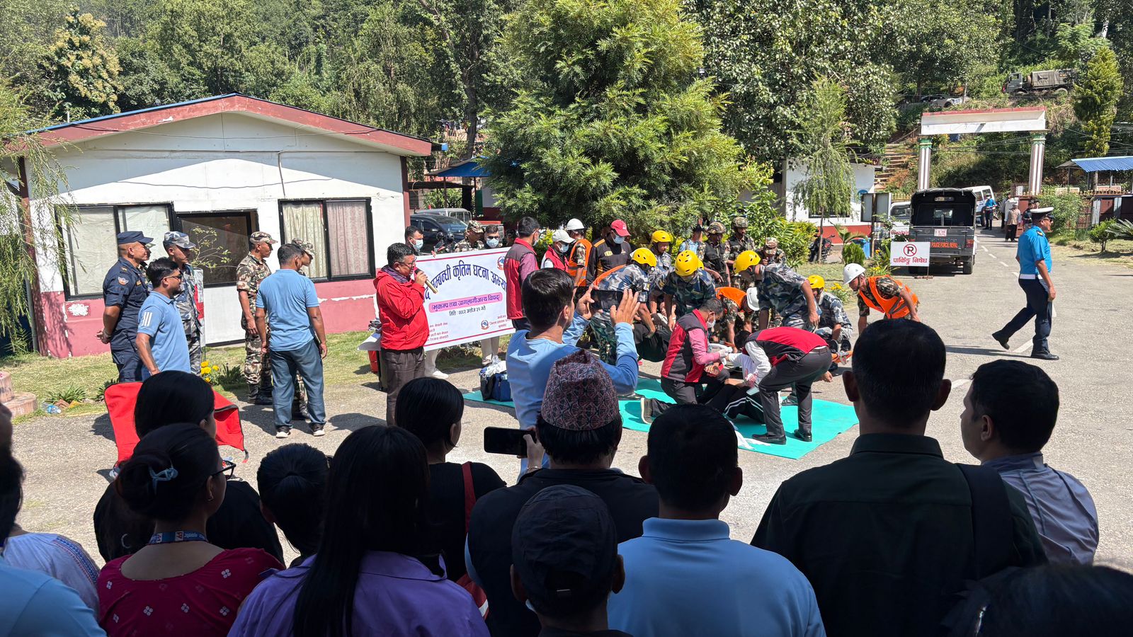 विपद् प्रतिकार्य पूर्वतयारी र जनचेतना अभिवृद्धिका लागि प्रहरीस्, सेना, सशस्त्र प्रहरी, रेडक्रसलगायतको समन्वयमा आयोजित कार्यक्रममा जिल्लास्थित सम्पुर्ण सुरक्षा निकाय, सरकारी कार्यालय तथा सरोकारवाला संघ संस्थाहरू तथा सेवाग्राहीहरुको सहभागितामा उक्त कृत्रिम घटना अभ्यास गरिएको आयोजक जिल्ला प्रशासन कार्यालय नुवाकोटले जनाएको छ ।