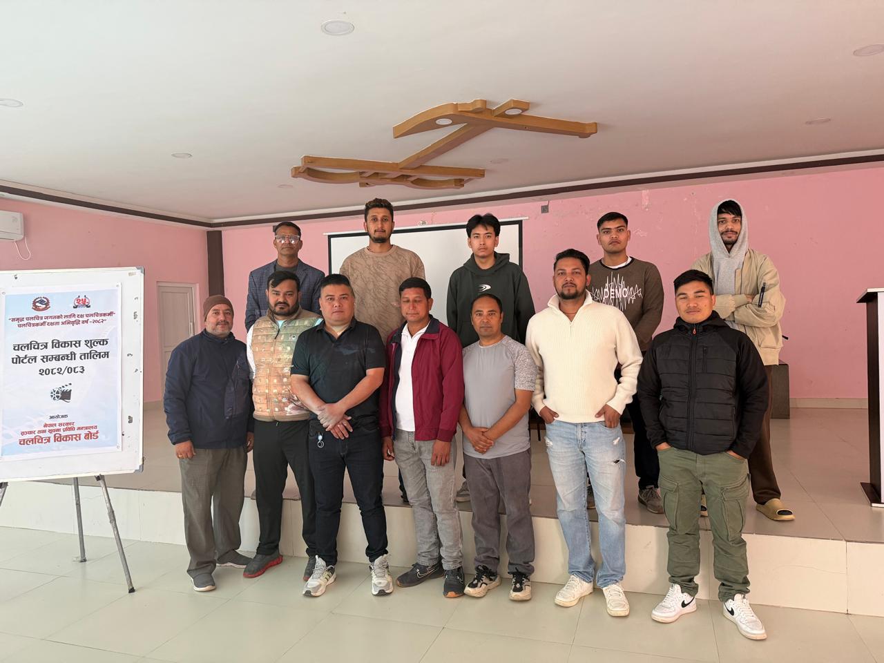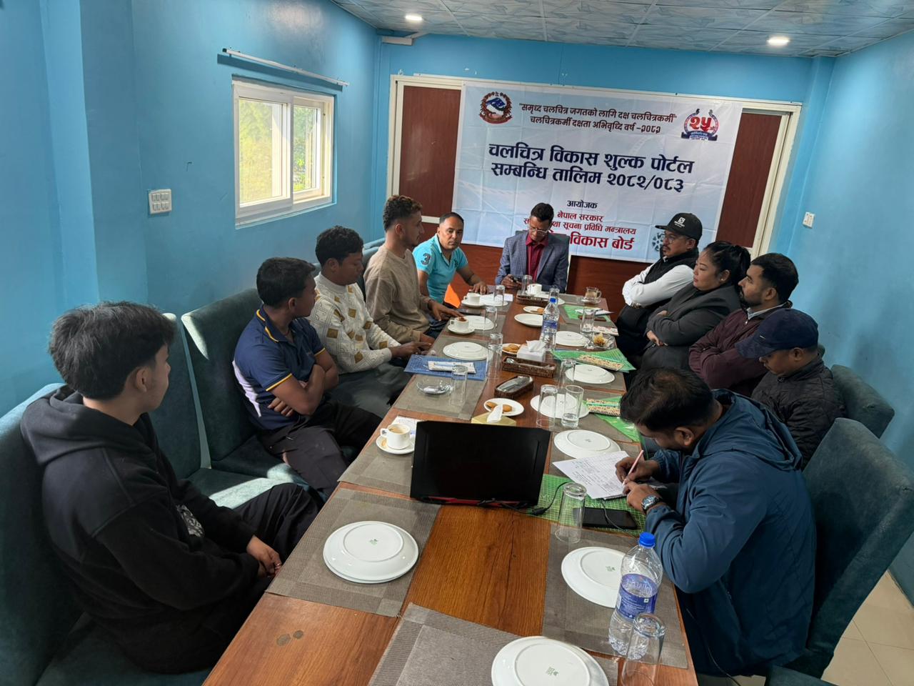उक्त तालिम बोर्ड सदस्य गणेशप्रसाद सुवेदी, अधिकृत दिनेश बानियाँ, प्रविण पाण्डे तथा एष्टर इनोभेसन प्रालिका प्रशिक्षक सेरफ लामाको टोलीले विषय अन्र्तगत रहेर सञ्चालन गरेको थियो । नेपाली चलचित्र क्षेत्रलाई व्यवस्थित, पारदर्शी र प्रविधिमैत्री बनाउने उद्देश्यसहित चलचित्र विकास बोर्डले चालु आर्थिक वर्षलाई ‘दक्ष चलचित्रकर्मी, चलचित्रकर्मी दक्षता अभिवृद्धि वर्ष’ घोषणा गरेकोमा सोही अभियानअन्तर्गत बोर्डले आफ्नै प्रमुख आयस्रोत चलचित्र विकास शुल्कलाई डिजिटल र अभिलेखिकृत रूपमा व्यवस्थापन गर्न बनाइएको चलचित्र विकास शुल्क पोर्टलको व्यापक अभिमुखीकरण तथा तालिम सुरु गरेको वोर्डका अध्यक्ष दिनेश डिसीको भनाई छ ।