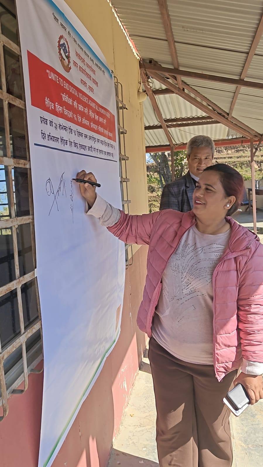 लैंगिक हिंशा विरुद्धको कार्यक्रममा सरोकारवाला तथा महिलाहरुको सहभागिता रहेका छ । जसअन्र्तगत लैंगिक हिंंसा अन्त्य गरौं, हिंसामुक्त समाज निर्माणमा सहभागी बनौं भन्न् माुल नाराका साथ लैंगिक हिसा विरुद्धको १६ दिने अभियान सफल पारौ भन्दै वेलकोटगढीमा हस्ताक्षरसहितको कार्यक्रम गरिएको छ ।