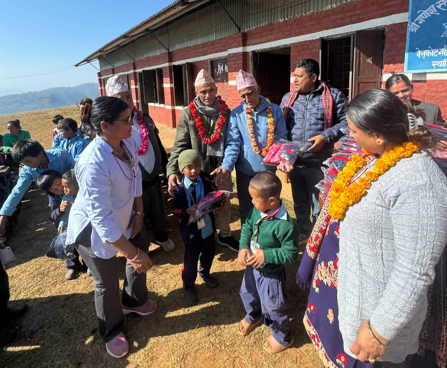 बेलकोटगढी ५ कोल्पुटारका यज्ञप्रसाद रिमालको १०४ औं जन्मजयन्तीका अवसरमा नाती उत्सव रिमालको सहयोगमा विद्यालयमा अधयननरत विद्यार्थीहरुलाई न्यानो कपडा वितरण गरिएको हो । नुवाकोटकै ज्येष्ठ नागरिकमध्ये अग्रज रिमालको सुस्वास्थ्य तथा दिर्घायुको कामनासहित रिमालले आफ्नै गाउँको विद्यालयमा अध्ययनरत साना बालबालिकालाई सहयोग गर्न पाउँदा आफू निकै खुशी भएको वताए ।
