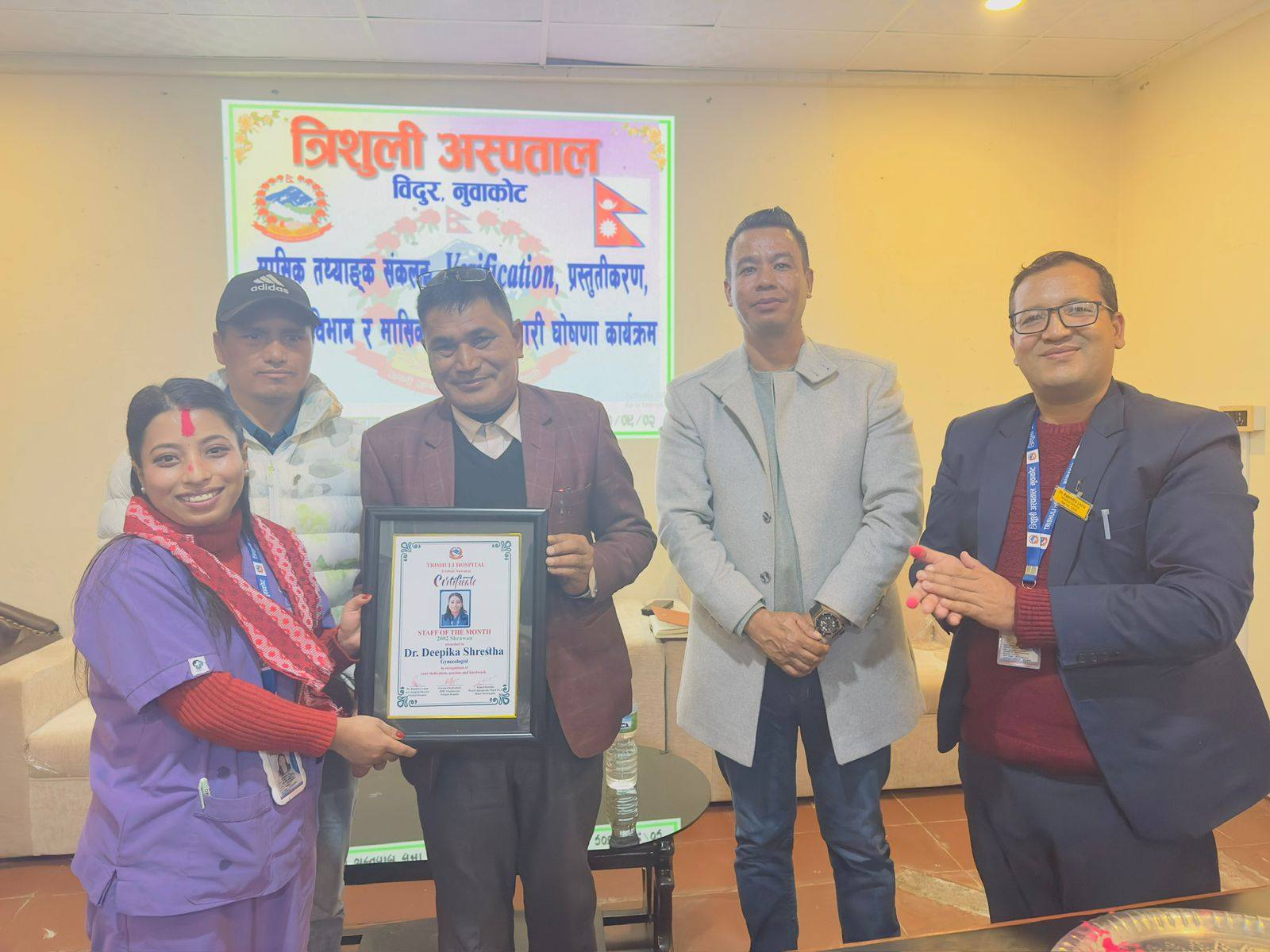 बिदुर– नुवाकोटको त्रिशूली अस्पतालले उतकृष्ट भएका विभिन्न विभाग तथा कर्मचारीलाई पुरस्कृत तथा सम्मानित गरेको छ । अस्पतालले चालुआर्थिक वर्ष २०८२/०८३ को साउनदेखि गत कार्तिकसम्मको मुल्यांकन गर्दै मासिक तथ्याङ्क सङ्कलन प्रस्तुतिकरण, उत्कृष्ट विभाग र मासिक उत्कृष्ट कर्मचारी सम्मान कार्यक्रम गरेको छ ।