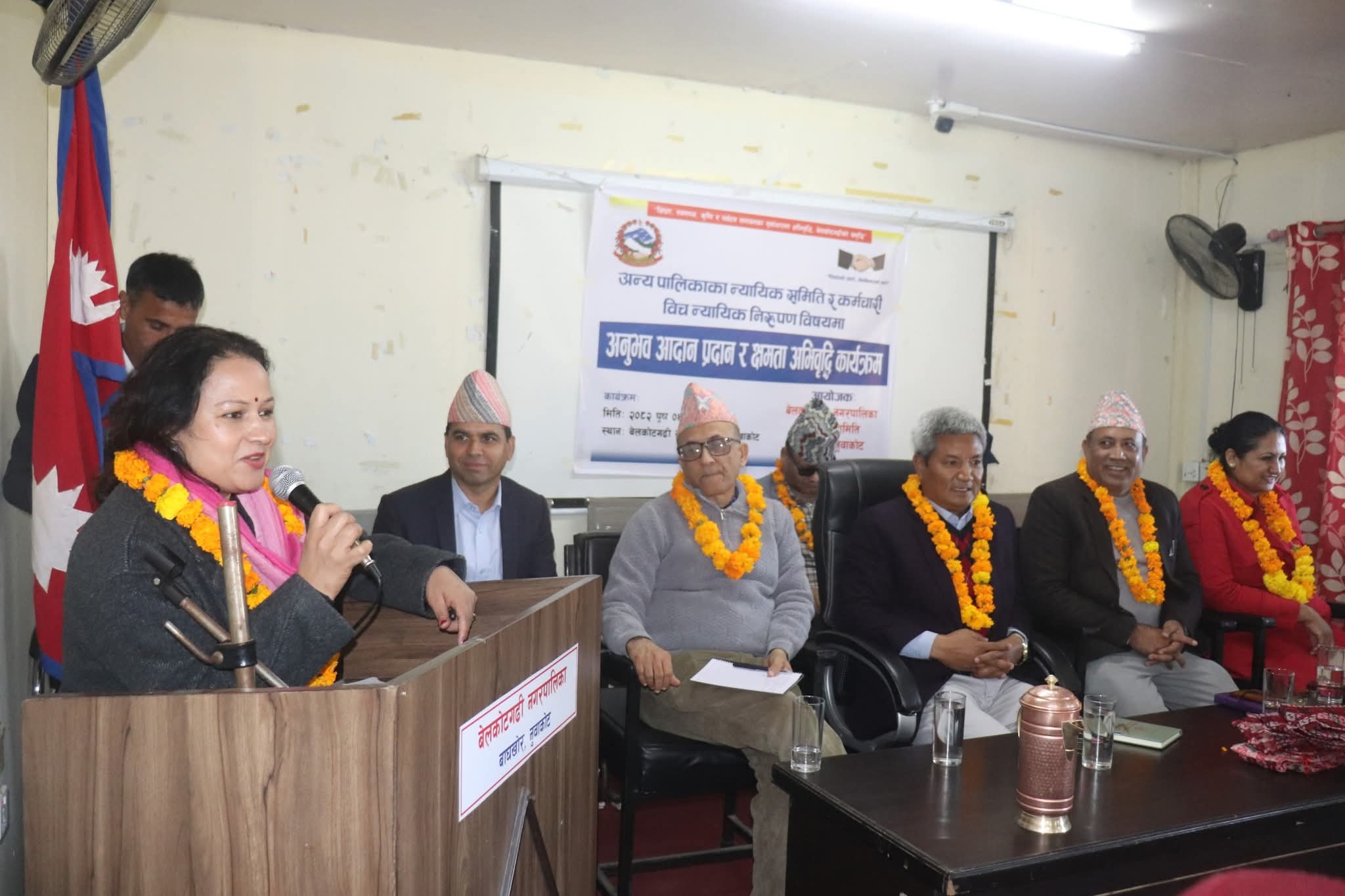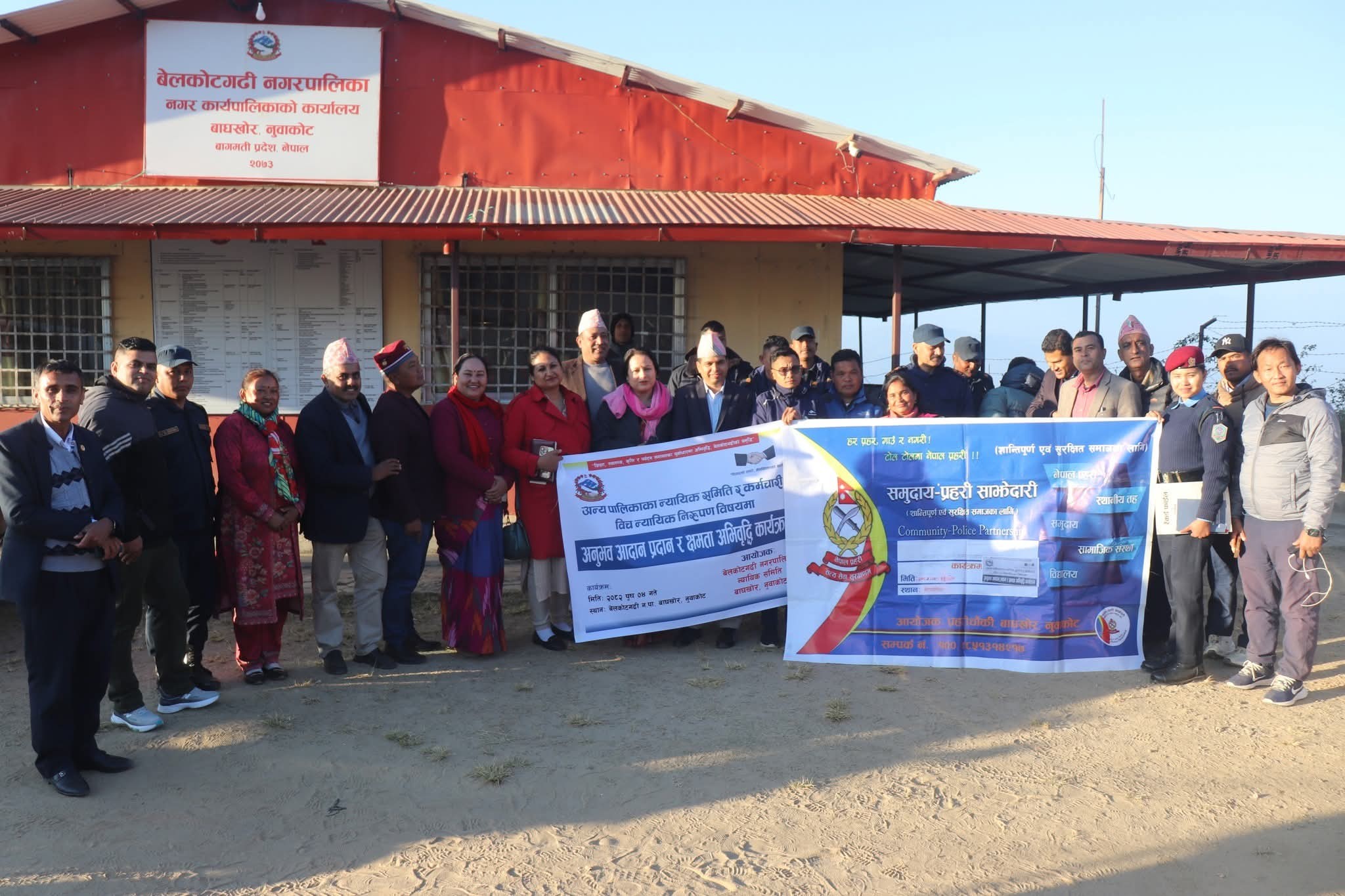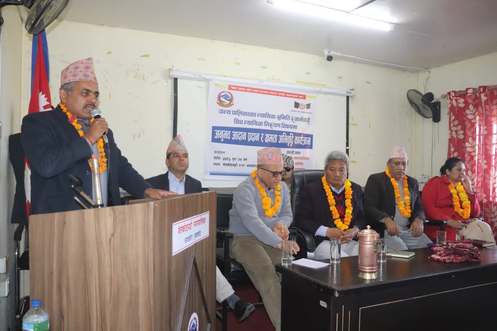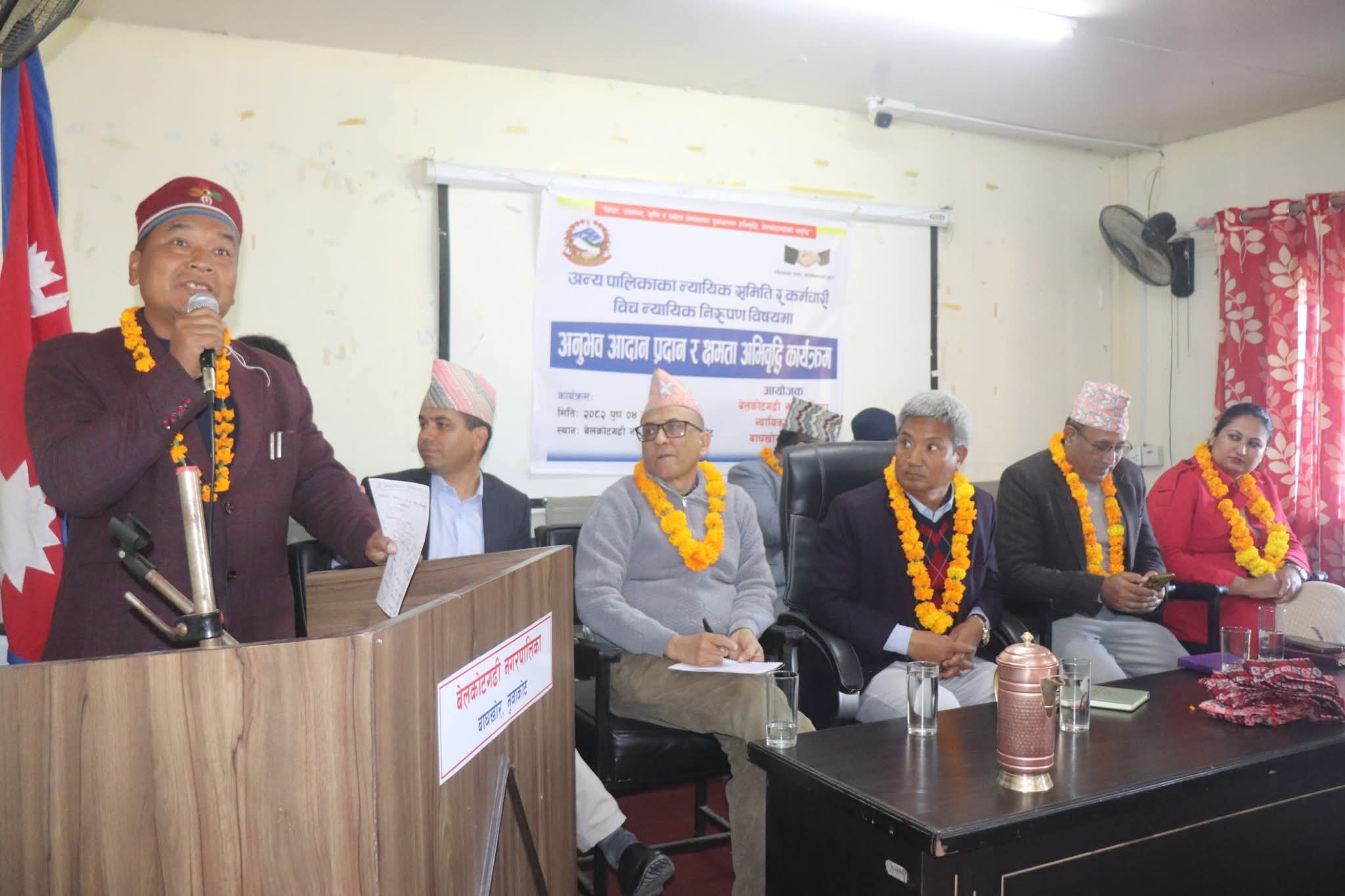 नुवाकोटको बेलकोटगढी नगरपालिका न्यायिक समितिको आयोजनामा नुवाकोटका विभिन्न स्थानीय तहका न्यायिक समिति, सरोकारवाला तथा कर्मचारीबीच शुक्रवार अन्र्तक्रियासहित अनुभव आदान–प्रदान र न्यायिक निरुपणसम्बन्धि क्षमता अभिवृद्धि कार्यक्रम सम्पन्न भएको हो । उक्त कार्यक्रमको उद्घाटन गर्दै बेलकोटगढी नपाका मेयर जगतबहादुर गुरुङले स्थानीयस्तरका समस्या समाधानका लागि न्यायिक समिति क्रियाशील रहेको वताए ।