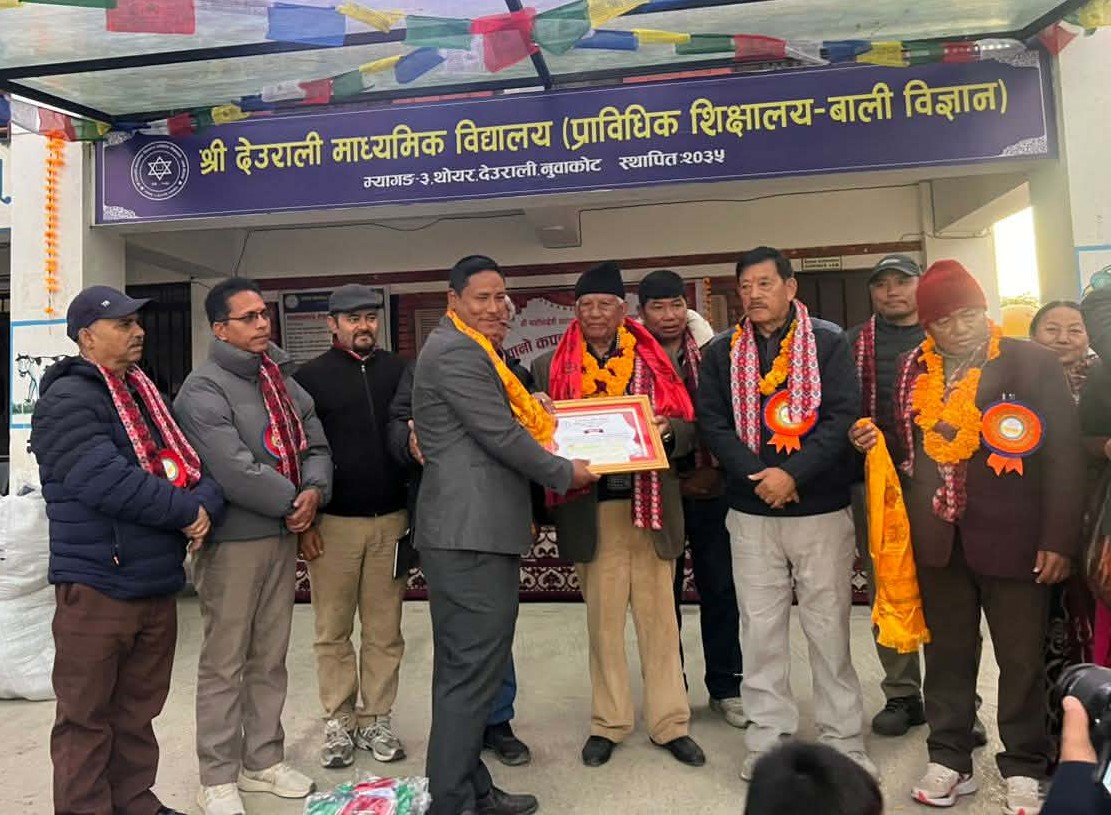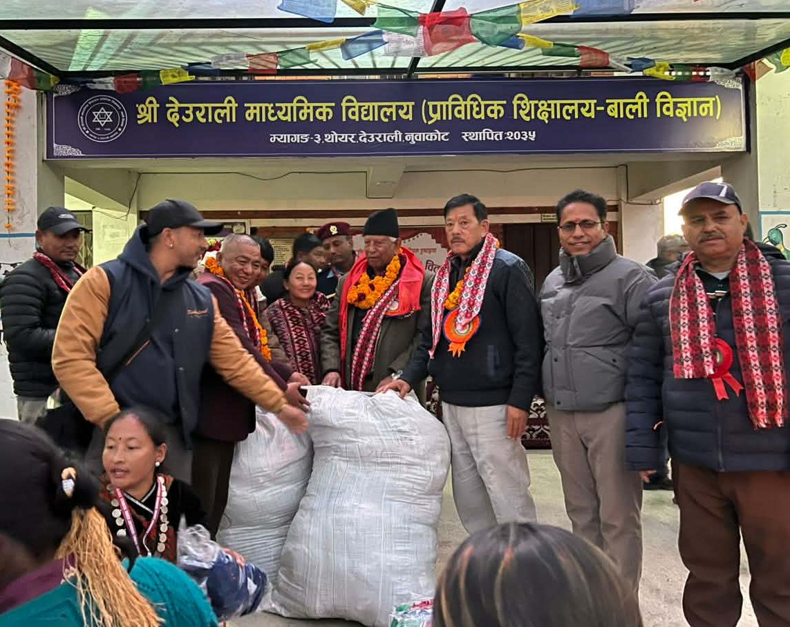 बिदुर– विद्यार्थीहरुलाई अध्ययनप्रति उत्साहित गराउने उद्धेश्यले नुवाकोटको देउरालीमा रहेको एक विद्यालयमा अध्ययनरत विद्यार्थीहरुलाई न्यानो पडक वितरण गरिएको छ । यसवाट विद्यार्थीहरुमा जाडोयाममा विद्यालय गई अध्ययन गर्न उत्साहित भउका छन् ।