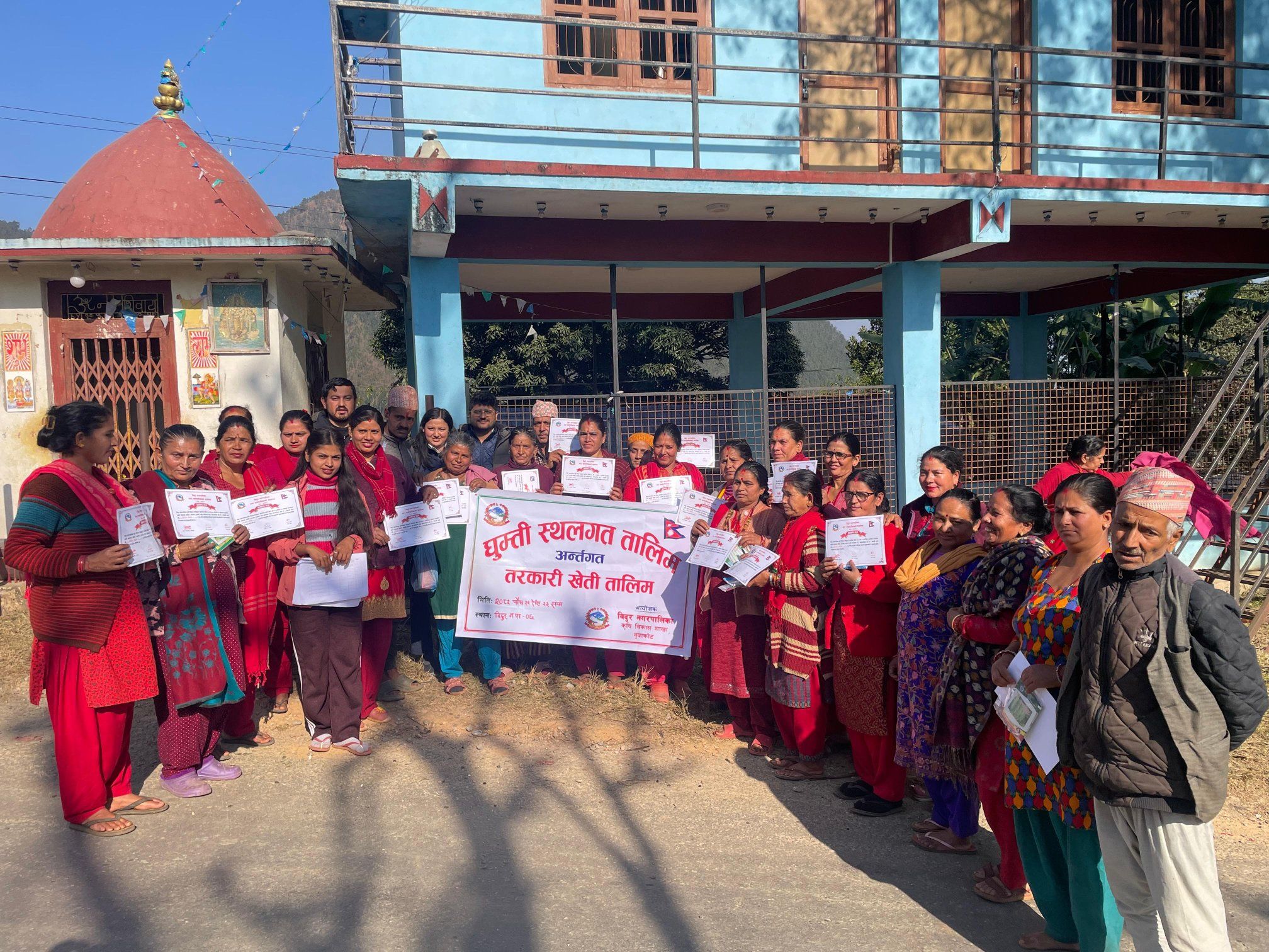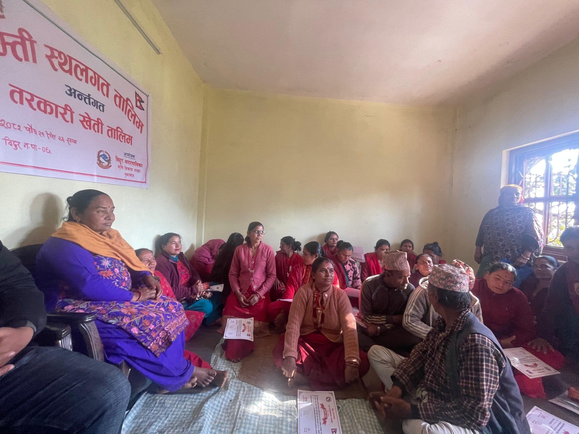 विदुर नगरपालिका कृषि विकास शाखाको आयोजनामा विदुर ६ चैनपुरमा तरकारी खेति सम्वन्धि घुम्ती स्थलगत तालिम प्रदान गरिएको हो । तालिममा सहभागी कृषकहरूलाई तरकारी बालीको मीनिकिट (बिउ) पनि निःशुल्क वितरण गरिएको छ ।