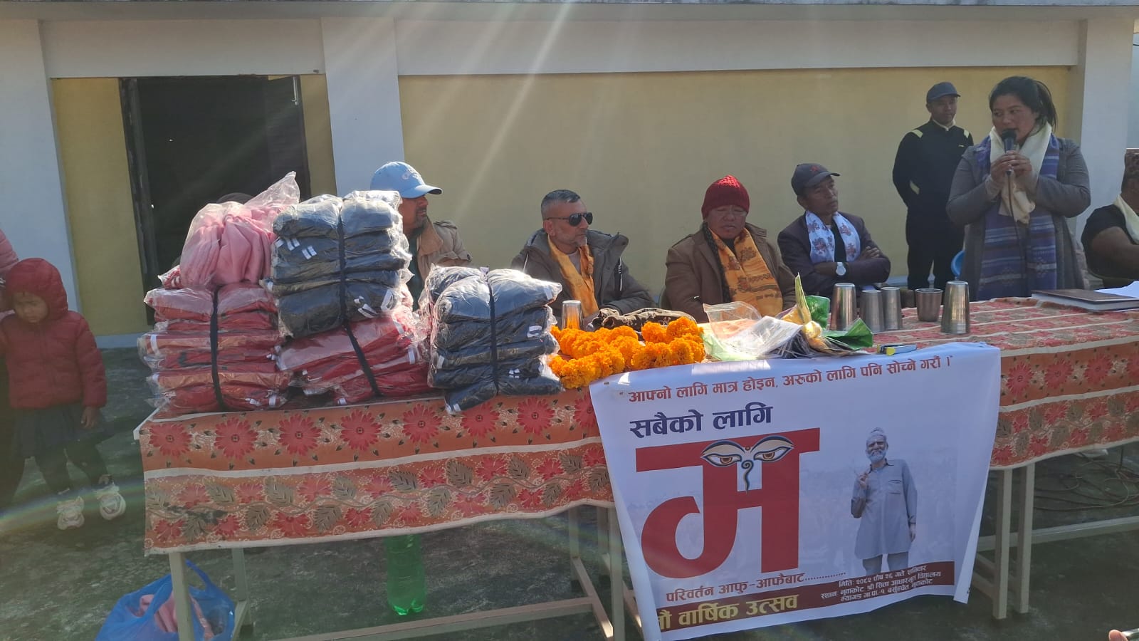 विद्यालयमै पुगेर कार्यक्रमसहित म्यागङ गापा अध्यक्ष आशावाहदुर तामाङ, म्यागङ १ का वडाध्यक्ष जीमावहादुर तामाङ, विद्यालयका अध्यक्ष लालवहादुर घले, प्रधानाध्यापक कुमार सिम्खडा, सामाजिक अगुवा तथा चर्चित कलाकार सीपी पुडासैनी धतुरे, महिला अगुवा सन्तुमाया घले, शिक्षाप्रेमी उद्धवप्रसाद घिमिरे, वसन्त चालिसे, विमला थापा, पुर्व वडाध्यक्ष दलसिहं तामाङ, कार्यपालिका सदस्य तथा वडा सदस्य, विद्यालयका शिक्षक शिक्षिकाहरुले विद्यार्थीहरुलाई न्यानो पोशाकका साथै जुत्ता मोजा हस्तान्तरण गरे । उक्त अवसरमा म्यागङ गापा अध्यक्ष आशावहादुर तामाङले शिक्षामा गुणस्तरियता, आधुनिकता र प्रविधिको मिश्रण जरुरी रहेको वताए ।