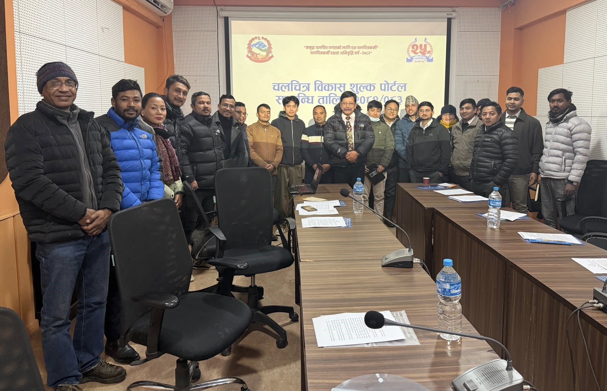 बिदुर– चलचित्र घरहरूका लागि “चलचित्र विकास शुल्क पोर्टल” को सैद्धान्तिक एवं प्रयोगात्मक सम्बन्धी प्रशिक्षण दिइएको छ । चलचित्र विकास शुल्क सम्वन्धि प्रशिक्षण दिइएको हो ।