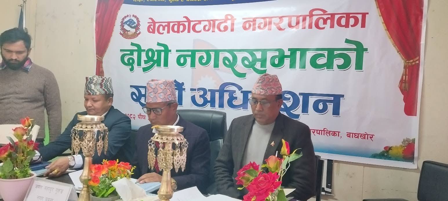 उनले वेलकोटगढीलाई पर्यटकिय गन्तव्यको साथै कृषि, पशुपालन तथा उत्पादनको भण्डारको रुपमा विकसित गरिने वताए । नपा कार्यालय वाघखोरमा सम्पन्न दोस्रो नगरसभाको सातौं अधिवेशनमा सभाध्यक्ष तथा मेयर जगतबहादुर गुरुङद्वारा प्रस्तुत विभिन्न ऐन नियम र नीति बिद्यान बिधेयक पारित भएको छ । बेलकोटगढी नगरपालिकाको सभाहलमा सम्पूर्ण नगरसभा सदस्य तथा कर्मचारीहरुको उपस्थितिमा सातौं अधिवेसन सम्पन्न भएको हो ।