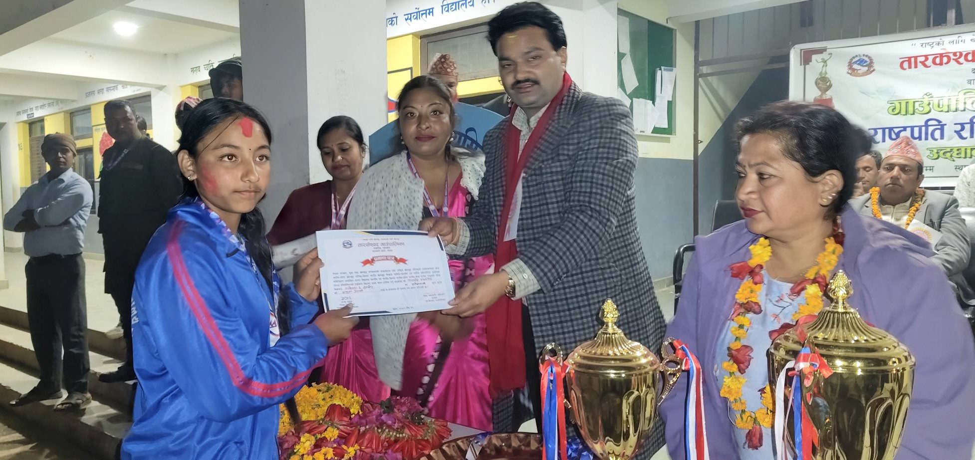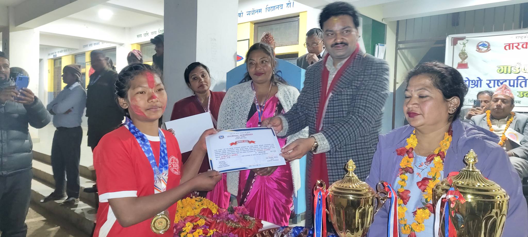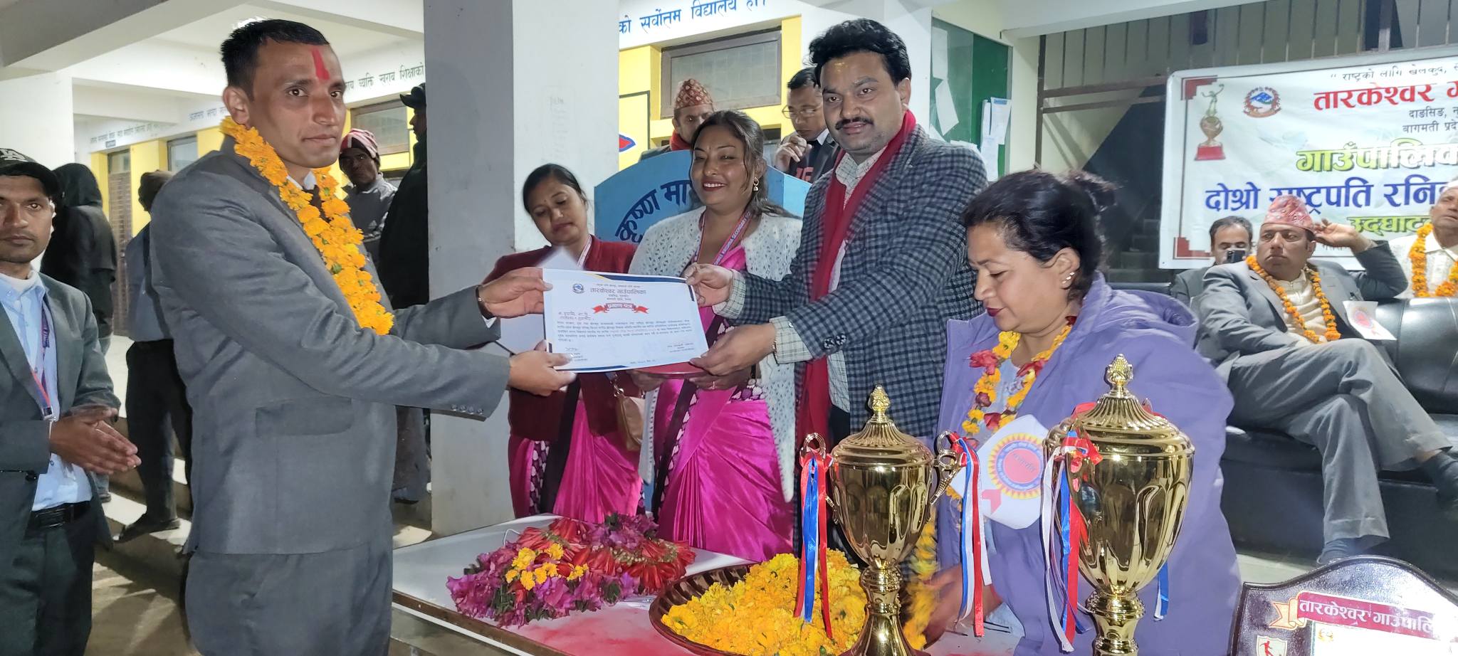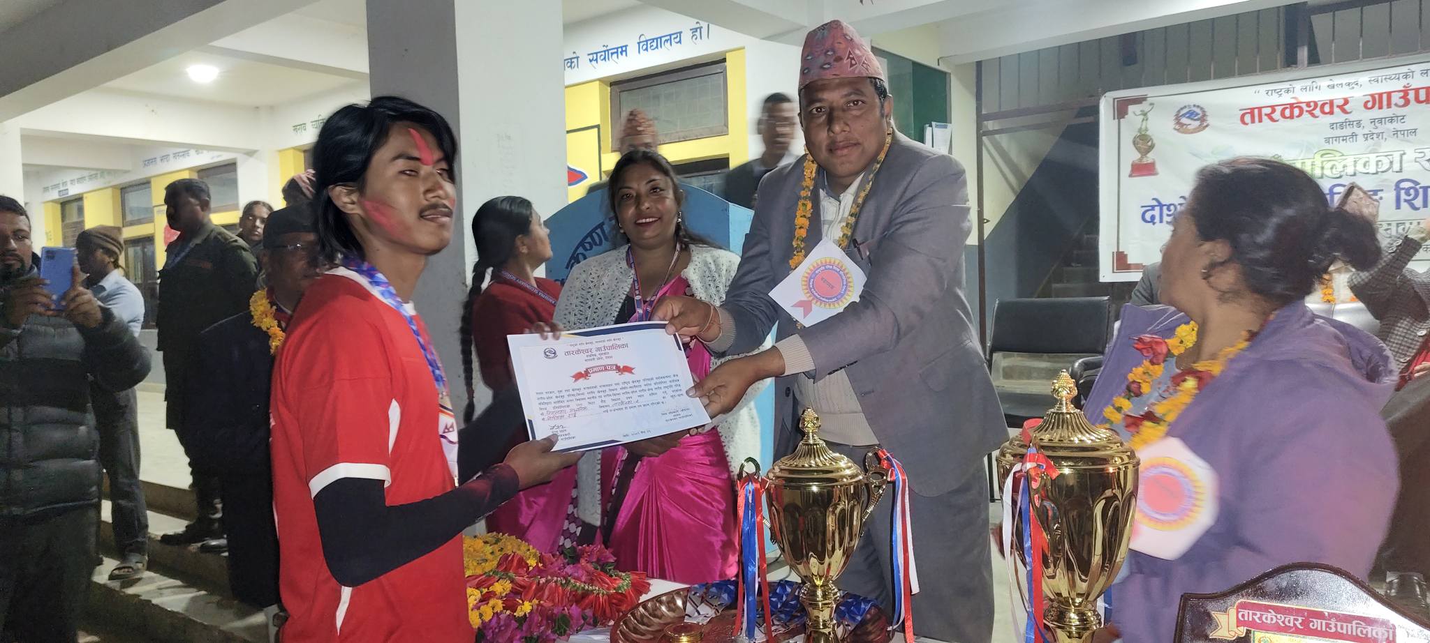 विजेता तथा उपविजेता खेलाडि तथा विद्यार्थीहरुलाई शिल्ड, मेडल, प्रमाणपत्र पुरस्कार प्रदान गरिएको छ । पुरस्कृत गर्दै तारकेश्वर गापा अध्यक्ष शिव अधिकारी अविरलले खेल क्षेत्रको विकास र विस्तारवाटै विद्यार्थीहरु अनुशासित हुने वताए ।