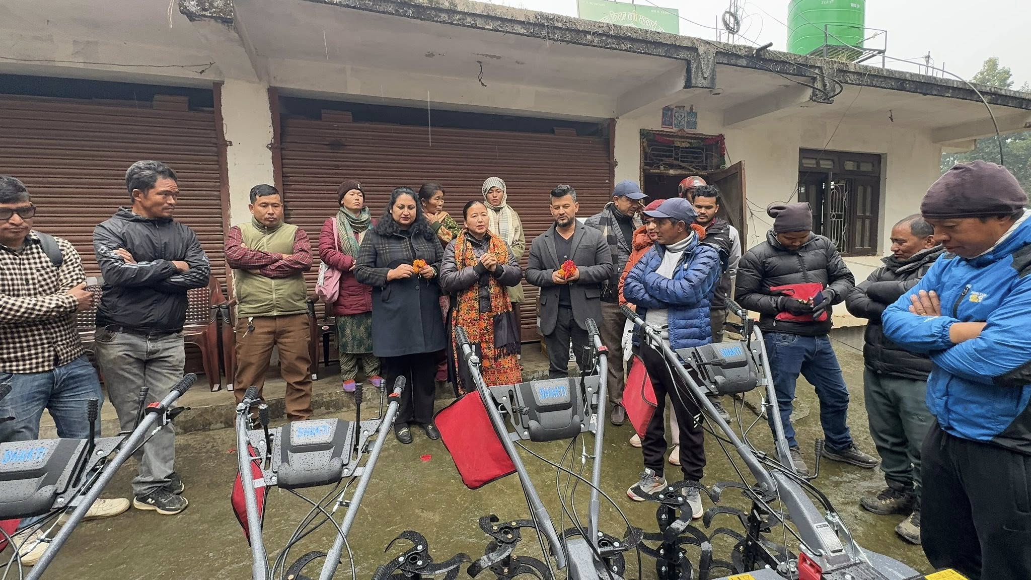 किसानहरुका लागि सात थान मिनिट्रिलर, ११ थान विद्युतीय स्प्रेयर र चार थान तौल लिने मेसिन हस्तान्तरण गरिएको हो । सङ्घीय सशर्त अनुदान कार्यक्रम अन्र्तगत ‘तरकारी बालीको नयाँ पकेट विकास कार्यक्रम’ सञ्चालनको लागी उक्त उपकरण उपलवध गराइएको हो ।