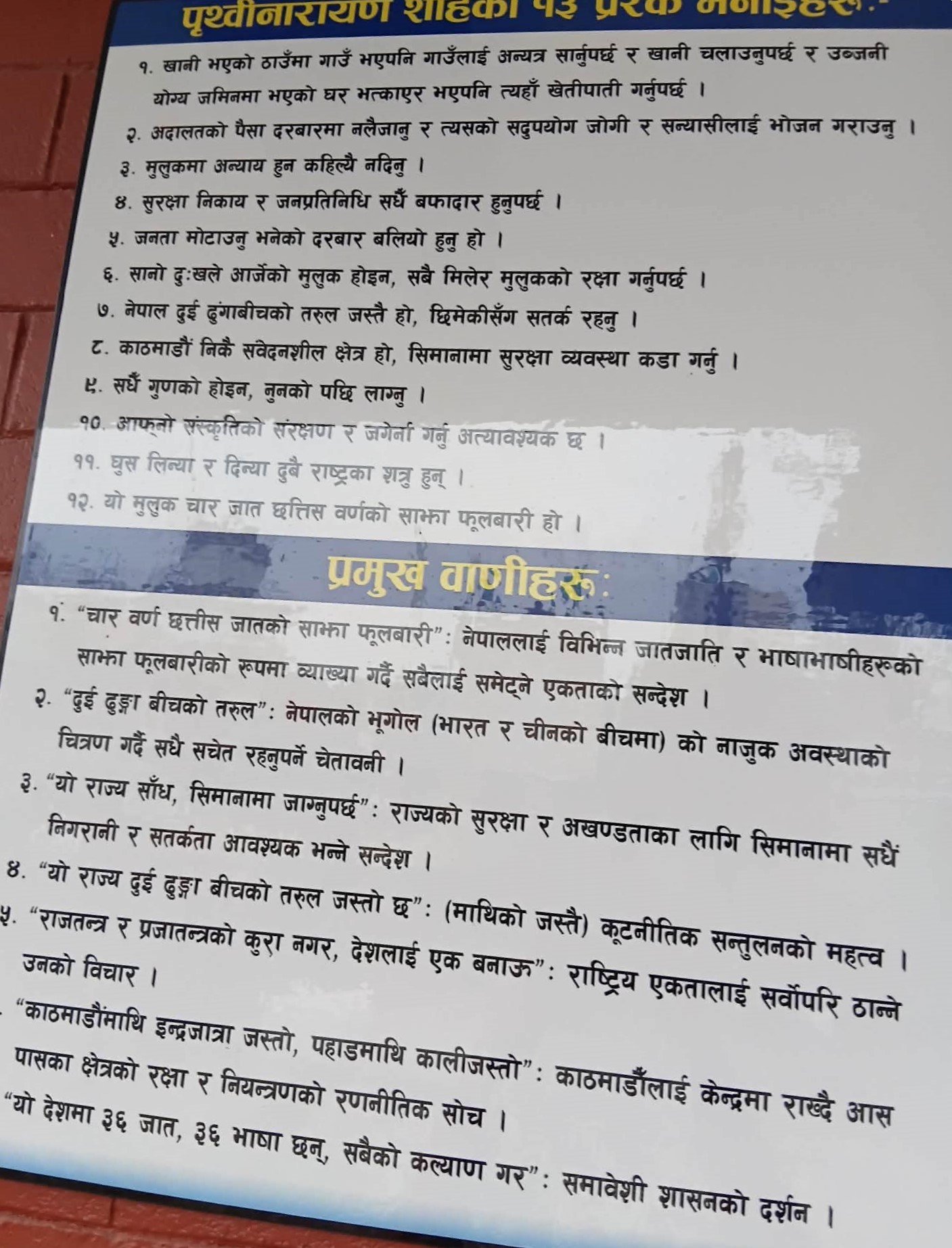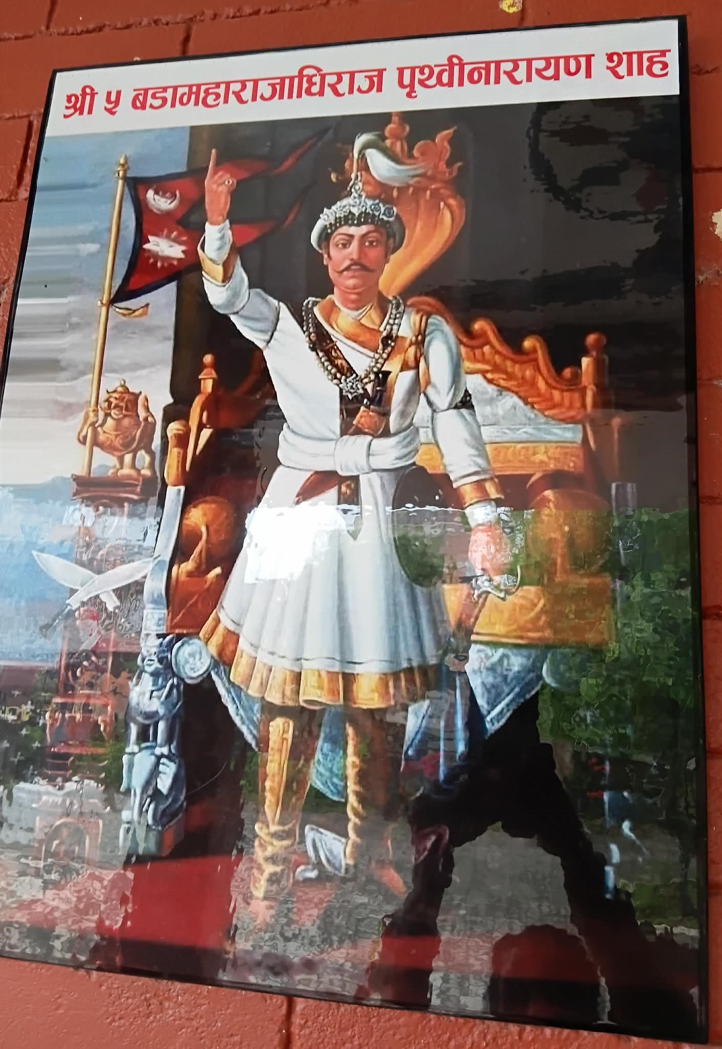 घरको भित्तामा पृथ्वीनारायणको अमरबाणी र महेन्द्रको तस्वीरः
