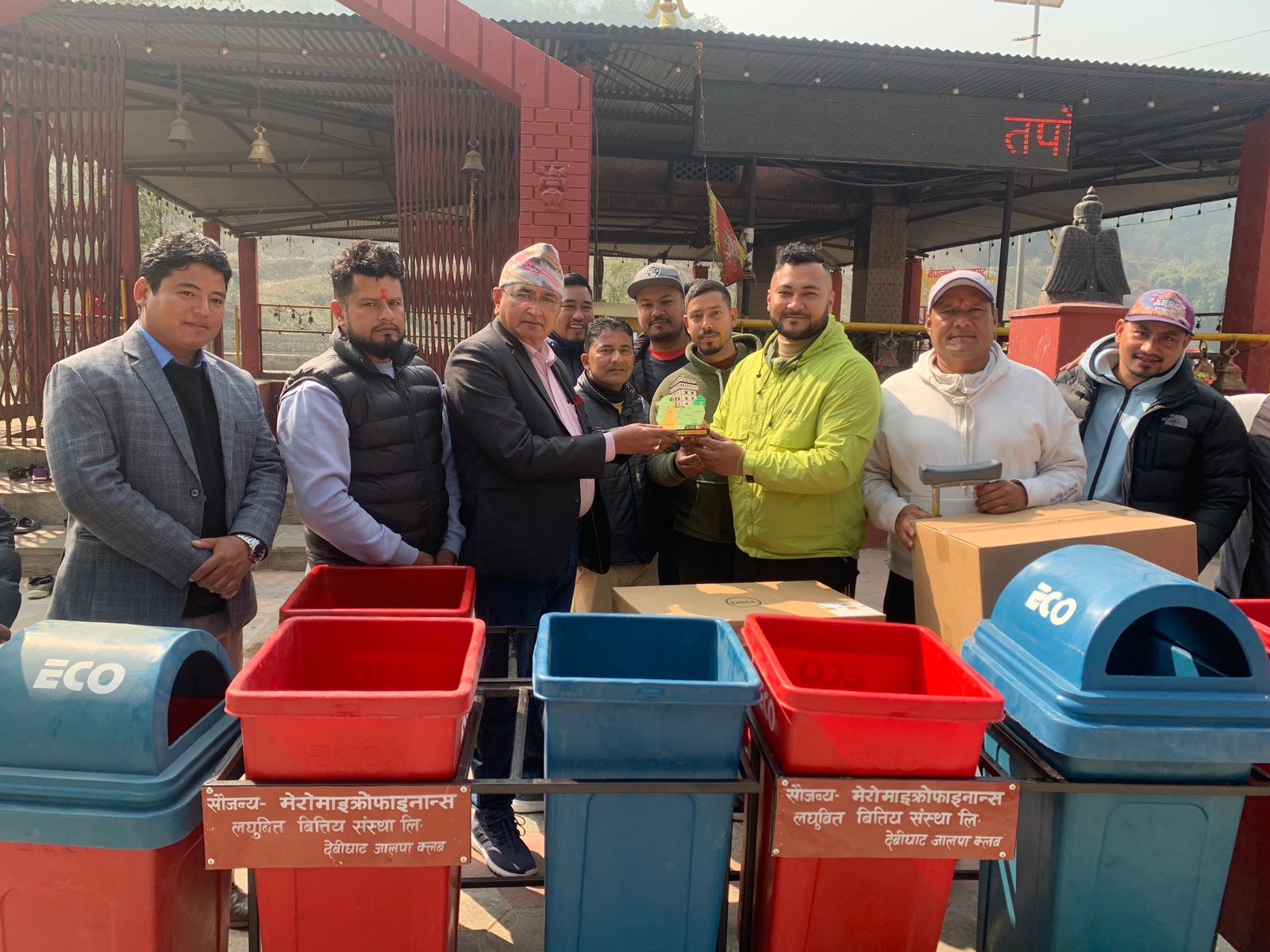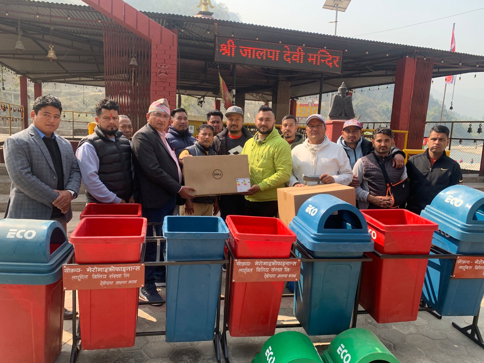 अधिकृत दाहालले नुवाकोटको प्रसिद्ध जालपादेवी मन्दिर तथा शिवधामको सरसफाई, संरक्षण, प्रवद्र्धन तथा महत्वको विकासका लागि कम्युटरसहितका सामग्रीहरु हस्तान्तरण गरिएको वताए । देवीघाट जालपा क्लबका अध्यक्ष नवीन चित्रकारले क्लवको अनुरोध अनुसार संस्थाले जालपादेवी मन्दिर तथा शिवधाम मन्दिर आसपासको स्थानलाई सरसफाई कार्यलाई प्रभावकारी बनाउनका लागि क्लबको दैनिक कार्य सञ्चालनलाई सहज बनाउन एक थान आधुनिक कम्प्युटर, १६ थान डस्टबिन र आठ थान डस्टबिन राख्ने फलामे फ्रेम मेरो माइक्रोफाइनान्स लघुवित्त वित्तीय संस्था लिको तर्फबाट उपलव्ध भएको वताए ।
