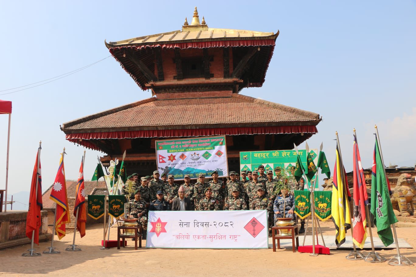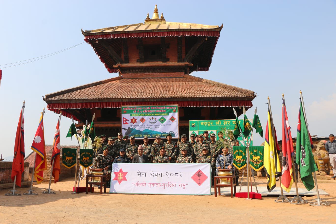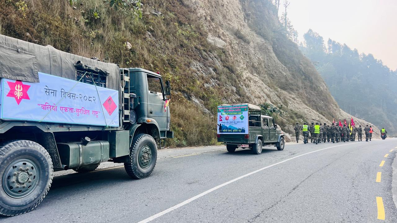 महाशिवरात्री तथा २६३ औँ सेना दिवसको अवसरमा “बलियो एकता सुरक्षित राष्ट्र” भन्ने मुख्य सन्देशका साथ ६ नं. बाहिनी, श्रीनाथ गण, शेर गण र भैरव गणको संयुक्त आयोजनामा आइतवार नुवाकोट, रसुवा र धादिङको ऐतिहासिक स्थलमा “ब्रिगेड म्याराथन गरिएको हो । नुवाकोट र धादिङको सीमाना भ¥याङभुरुङबाट सुरु भएको सेनाको म्याराथन नुवाकोटको सामरी, छिमेकी रसुवाको बेत्रावती, नुवाकोटको शुभघाट, ढुङ्गे, बट्टार हुँदै विदुर नगरपालिका–२ स्थित प्रसिद्ध भैरवी मन्दिरसम्म सञ्चालन गरिएको थियो ।