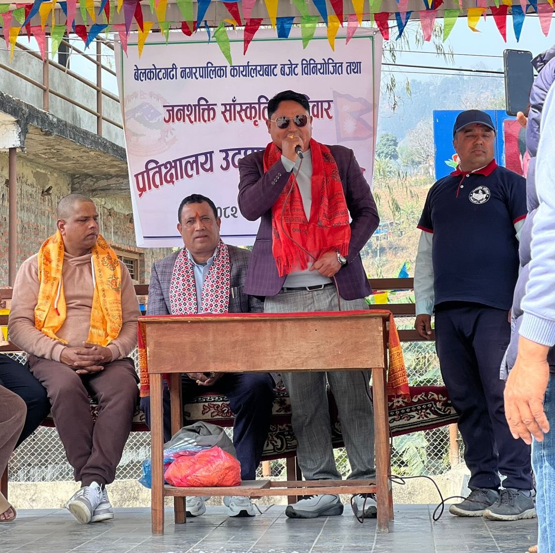 उक्त प्रतिक्षालयको बेलकोटगढि नगरपालिकाका उपमेय शिवप्रसाद दाहालले उद्घाटन गरे । उनले स्थानीय आवस्यकताको विकास र निर्माण कार्यलाई वेलकोटगढी नपाले प्राथमिकता दिएको वताए ।