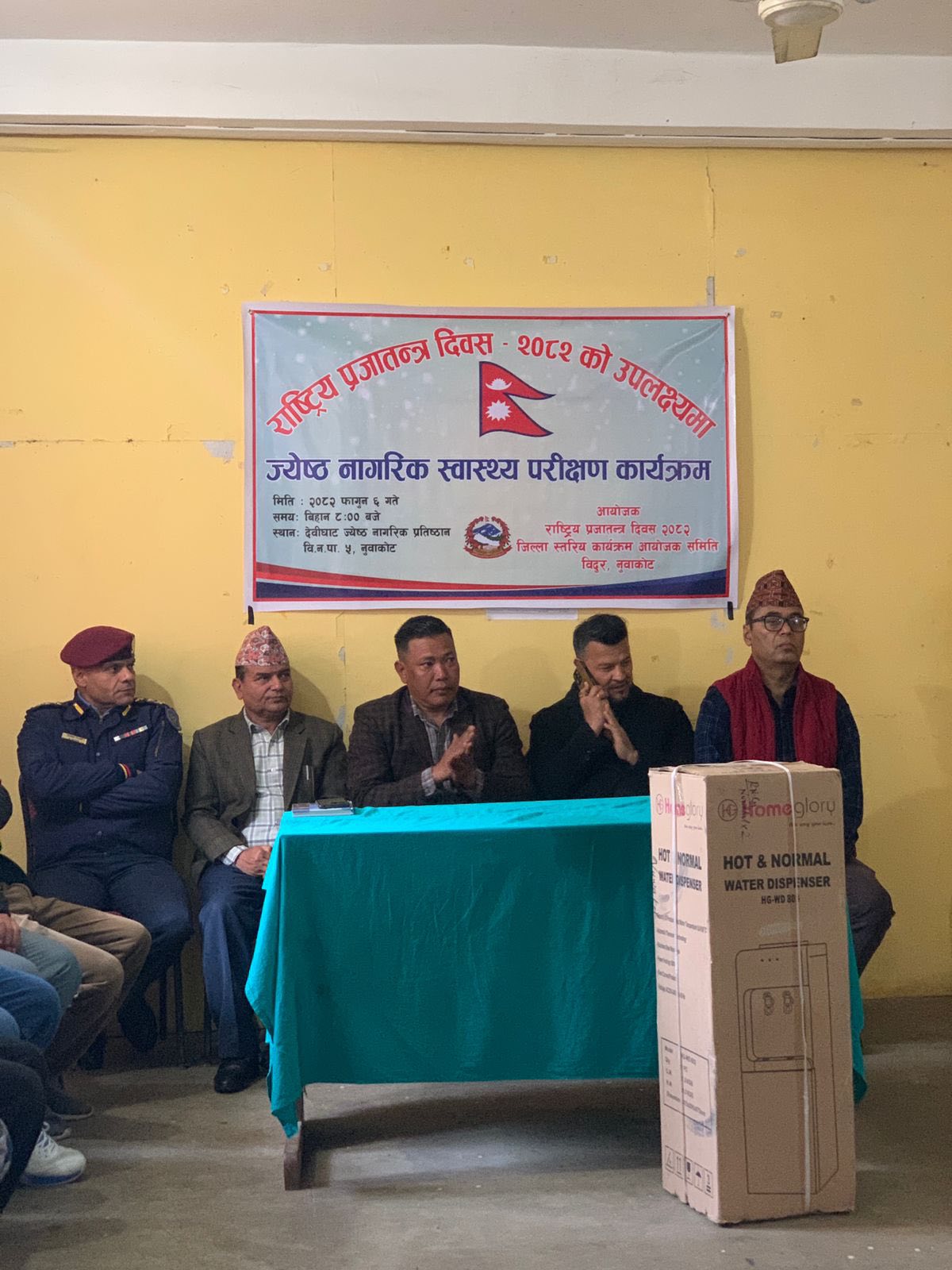 बिदुर– नुवाकोटको देवीघाटमा रहेका वृद्धवृद्धाहरुको स्वास्थ्य परिक्षण गरिएको छ । आवस्यक औषधिका साथै पिउने पानीको लागि उपकरणसमेत प्रदान गरिएको छ । राष्ट्रिय प्रजातन्त्र दिवसको उपलक्ष्यमा विदुर नगरपालिका ५ स्थित देवीघाट ज्येष्ठ नागरिक अध्ययन प्रतिष्ठानमा ‘ज्येष्ठ नागरिक स्वास्थ्य परीक्षण कार्यक्रम’सम्पन्न भएको छ ।