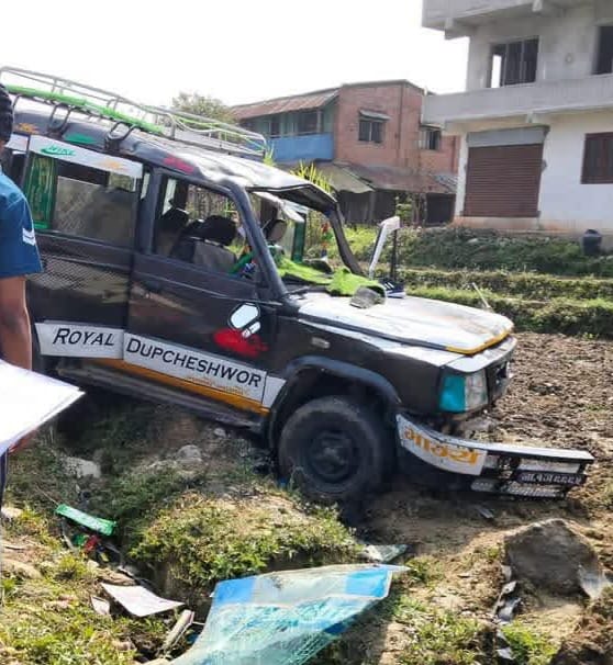 उक्त गाडी सडकमार्गबाट दुई मिटर तल पुगेर दुर्घटनाग्रस्त हुदा गाडीका चालकसहित त्यसमा सवार ६ जना घाईते भएको प्रहरी नायव उपरिक्षक विक्रम लामाले जानकारी दिए । स्थानीयवासी, प्रहरीले उद्धार गरि तत्काल उपचारको लागि स्थानीय स्वास्थ्यसंस्थामा पठाएकोमा प्राथमिक उपचारपश्चात थप उपचारको लागि ६ जनालाई नै काठमाडौको ग्राण्डी अन्र्तराष्ट्रिय अस्पताल लगेर उपचार सुरु गरिएको डिएसपि लामाले वताए ।