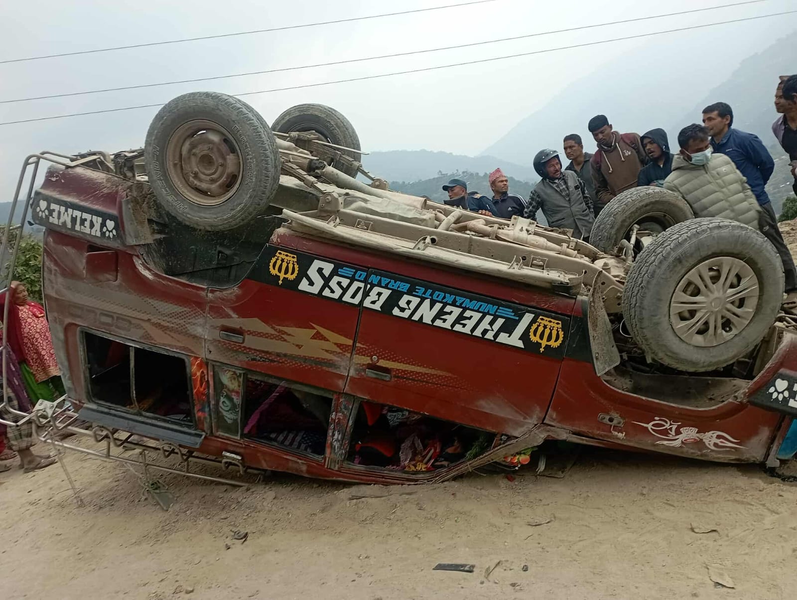 बिदुर-नुवाकोटको पुर्वी भेगमा रहेको शिवपुरीमा यात्रुवाहक टाटासुमो दुर्घटनाग्रस्त भएको छ । दुर्घटनामा चालकसहित नौ जना घाइते भएका छन् ।
