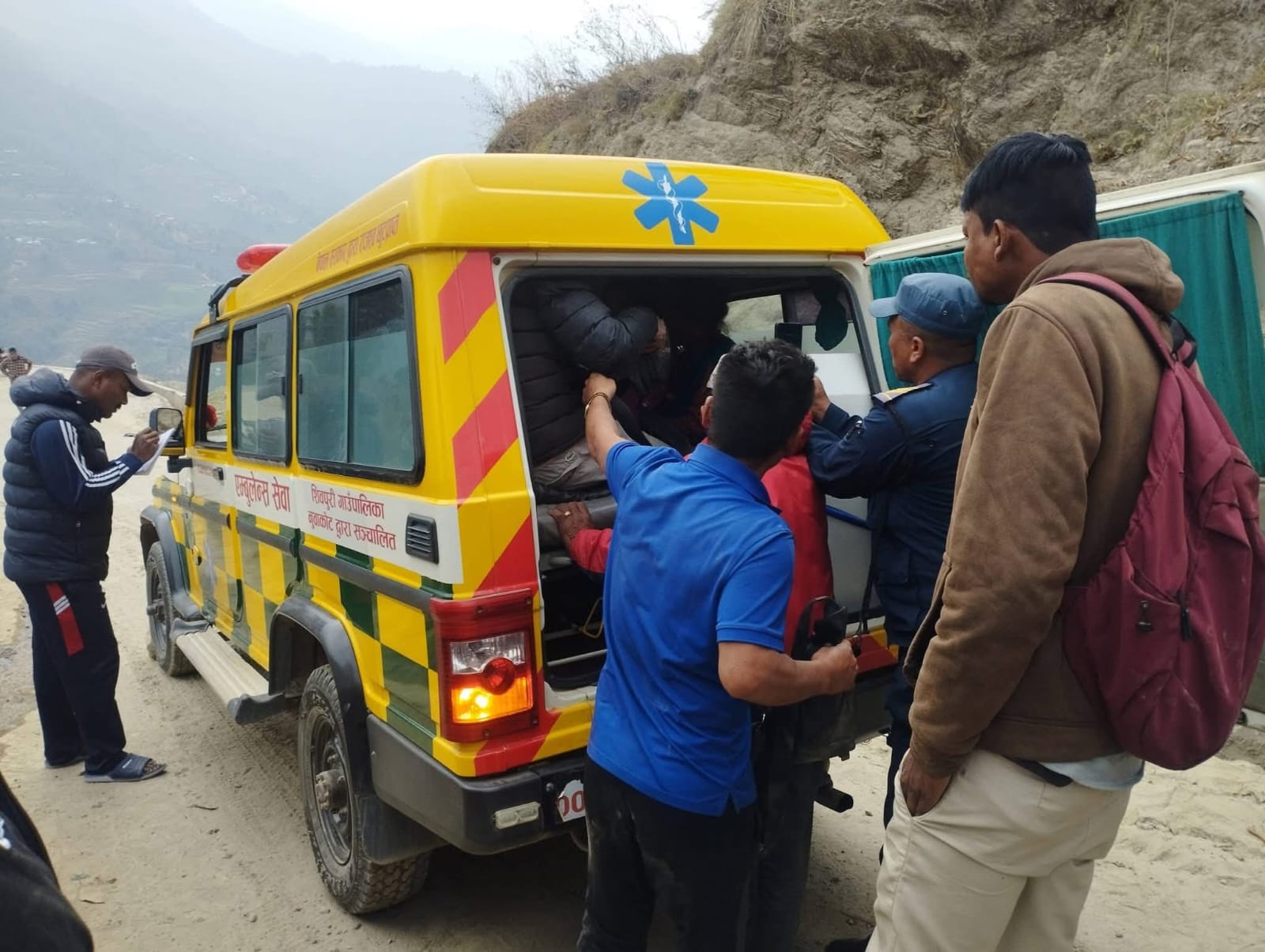 दुर्घटनापछि घाइतेहरुको स्थानीयवासी तथा प्रहरीले उद्धार गरेका थिए । घाइतेहरुमा दुप्चेश्वर गापा ४ जिम्नाङका .५० वर्षिय सम्तेन लामा, सोही स्थानकी ४३ वर्षिय फुलमाया लामा, ४२ वर्षिय नेमाग्याम्ते लामा, २७ वर्षिया कल्पना तामाङ, ३५ वर्षिय इन्द्रकुमार तामाङ, ४३ वर्षिया रुपसागी तामाङ, ४४ वर्षिया सुशीला तामाङ र कालिकोटको नरहरी गापा घर भई हाल दुप्चेश्वर गापा ४ बस्ने ३४ बर्षिय टेकवहादुर विष्ट रहेका छन् ।