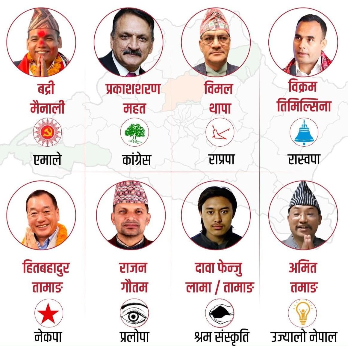 उनका निकटतम प्रतिस्पर्धी नेपाली कांग्रेसका उम्मेदवार डा. प्रकाशशरण महतले १८ हजार पांचसय ९७,नेपाली कम्युनिस्ट पार्टीका हितहवादुर तामाङले १३ हजार तीनसय ७७, नेकपा एमालेका वद्री मैनालीले आठहजार नौसय ३२ मत पाएर कुल सदर मतको १० प्रतिशत मत पाएर जमानत फिर्ता भएको छ । उज्यालो नेपाल पार्टीका अमित तामाङले दुईहजार ६३, राष्ट्रिय प्रजातन्त्र पार्टीका विमल थापाले सातसय ५६ मत, श्रम संस्कृति पार्टीका दावाफेन्जु लामाले दुईसय ८८ मत, मंगोल नेशनल अर्गनाइजेसनका कुमार रानामगरले एकसय ५९, नेकपा माओवादीका महेन्द्र तामाङले एकसय ५६ मत, प्रगतीशील लोकतान्त्रिक पार्टीका राजन गौतमले ८८, स्वतन्त्र उम्मेदवार सन्जिव गुरुङले ६३, नेककिपाका रविन्द्र डंगोलले ५०, स्वतन्त्र राजु थापाले ४९, स्वतन्त्र रामेश्वर भण्डारीले २९, जनता समाजवादी पार्टीका होमवहादुर राइले २४, स्वतन्त्र माधव थापाले २०, स्वतन्त्र चेपे तामाङले १४ र मितेरी पार्टी नेपालका विवेक सिलवालले ६ मत प्राप्त गरेका छन् ।