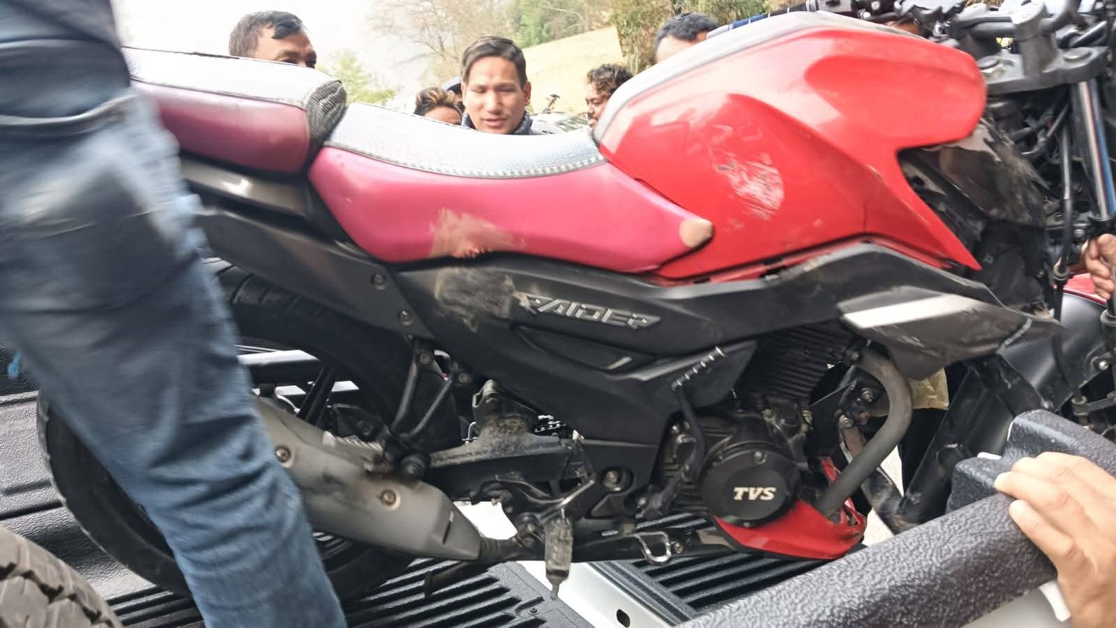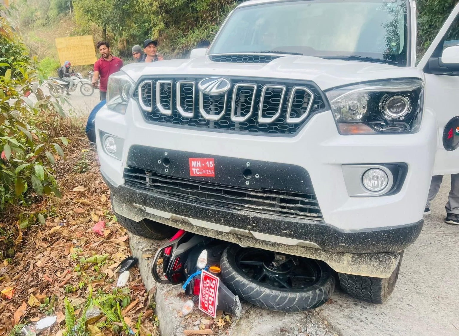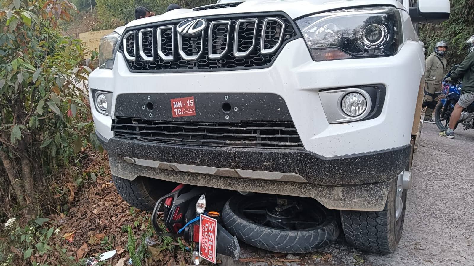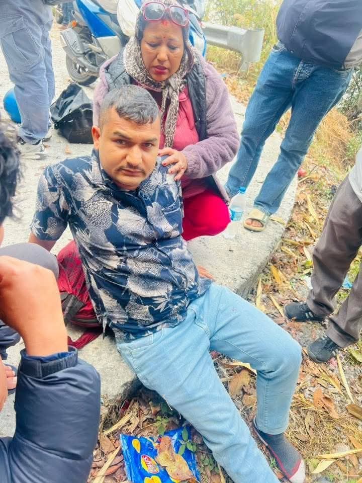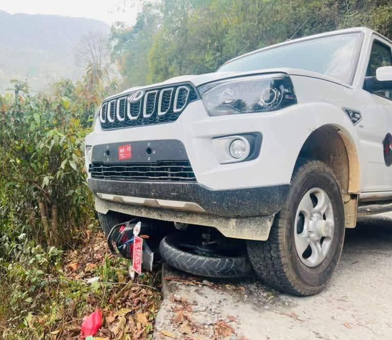 गुरुङगाउँस्थित सेल्फीडाँडामा सरकारी स्कोर्पियोले मोटरसाइकललाई किच्दा मोटरसाइकल चालक घाइते भएका हुन् । बिदुर नपा ६ चण्डीपोखरीस्थित केन्द्रीय कारागार नुवाकोटका प्रमुख भेषवहादुर कुंवर आफैले हांकेको एमएच–१५टिसि–०४१५ए नम्बरको महिन्द्रा स्कोर्पियो गाडीले काठमाडौवाट नुवाकोटतथर्फ आउंदै गरेको बागमती प्रदेश–०२–०४०प७१४६ नम्बरको मोटरसाइकललाई किचेको स्थानीय प्रत्यक्षदर्शीले बताएका छन् ।