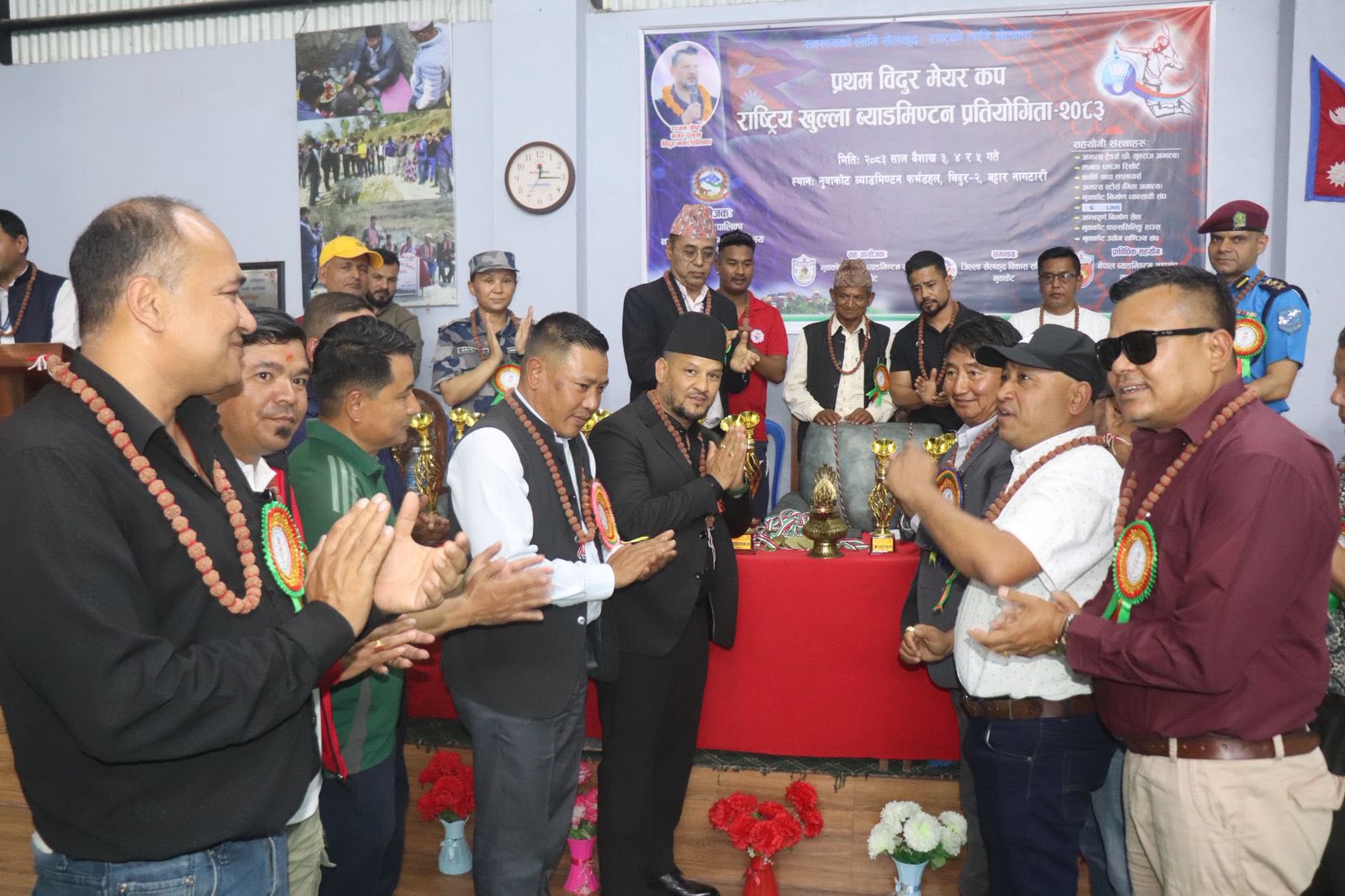 बिदुर – व्याडमिण्टन खेलको विकास र विस्तारका लागि नुवाकोटको बट्टारमा प्रथम विदुर मेयर कप राष्ट्रिय खुल्ला ब्याडमिन्टन प्रतियोगिता सुरु भएको छ । प्रतियोगिताको दुई सय जना खेलाडिहरुको सहभागितामा विहिवार सुरु गरिएकोे आयोजक बिदुर नपा कार्यालले जनाएको छ । नुवाकोट ब्याडमिन्टन संघको प्राविधिक सहयोगमा सन्चालन भएकोे प्रतियोगिताको वागमति प्रदेशका पुर्व मुख्यमन्त्रि वहादुरसिंह लामातामाङले उद्घाटन गरे ।