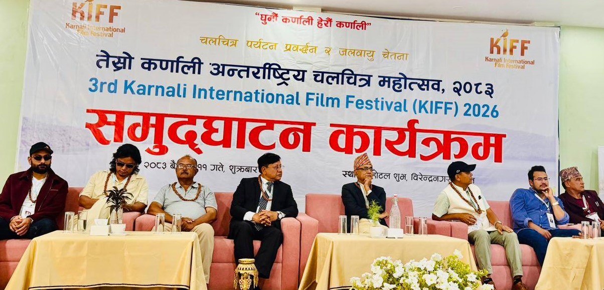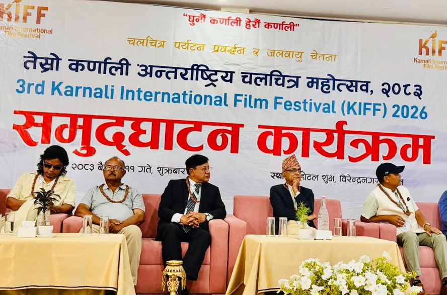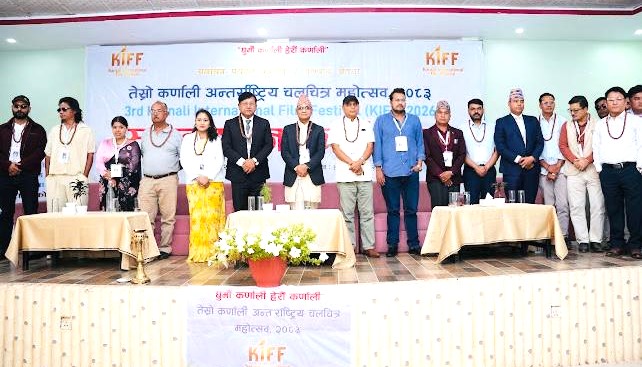बिदुर – कर्णाली प्रदेशको कला, संस्कृति, पर्यटन सम्भावना र चलचित्र क्षेत्रको विकासलाई जोड्ने उद्धेश्यले सुर्खेतको वीरेन्द्रनगरमा आयोजित तेस्रो कर्णाली अन्तर्राष्ट्रिय चलचित्र महोत्सव सम्पन्न भएको छ । महोत्सवले चलचित्र क्षेत्रको विकासलाई जोड्ने प्रतिवद्धता जनाएको छ । “घुमौँ कर्णाली, हेरौँ कर्णाली” तथा “जनजनमा नेपाली चलचित्र, मनमनमा नेपाली चलचित्र” भन्ने नारासहित आयोजित महोत्सव महत्वपूर्ण मञ्चका रूपमा सम्पन्न भएको हो ।