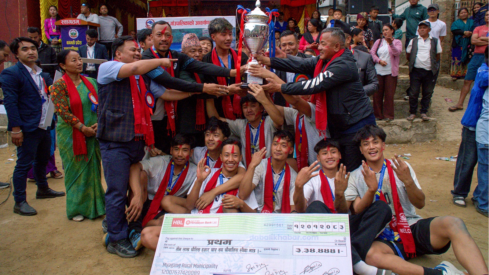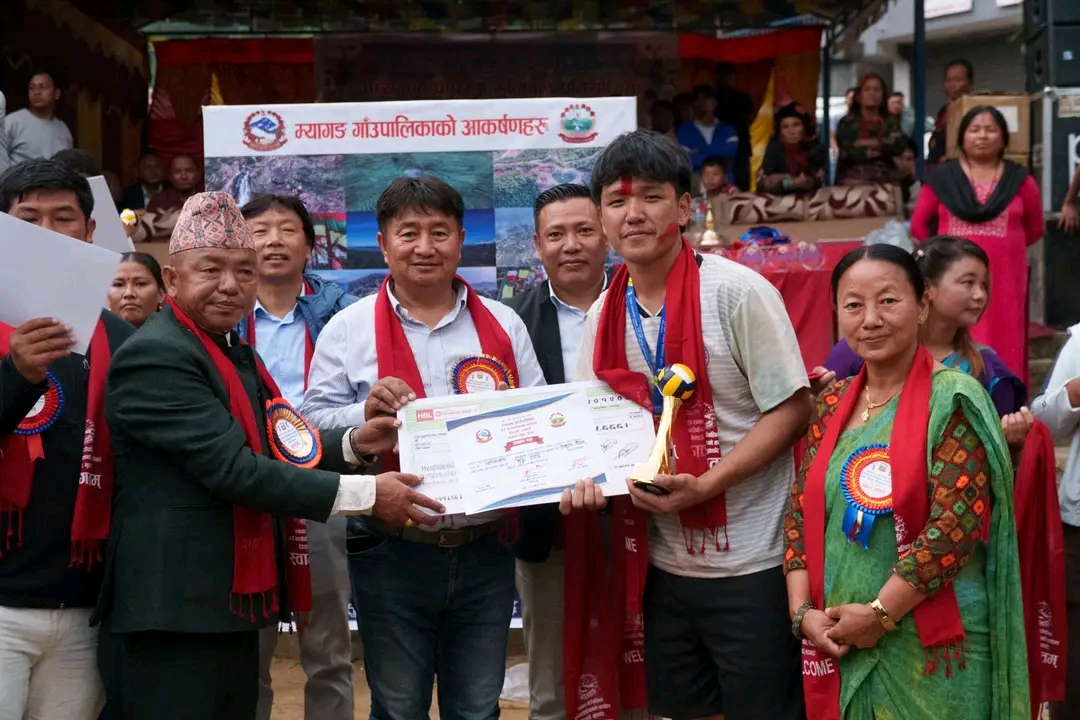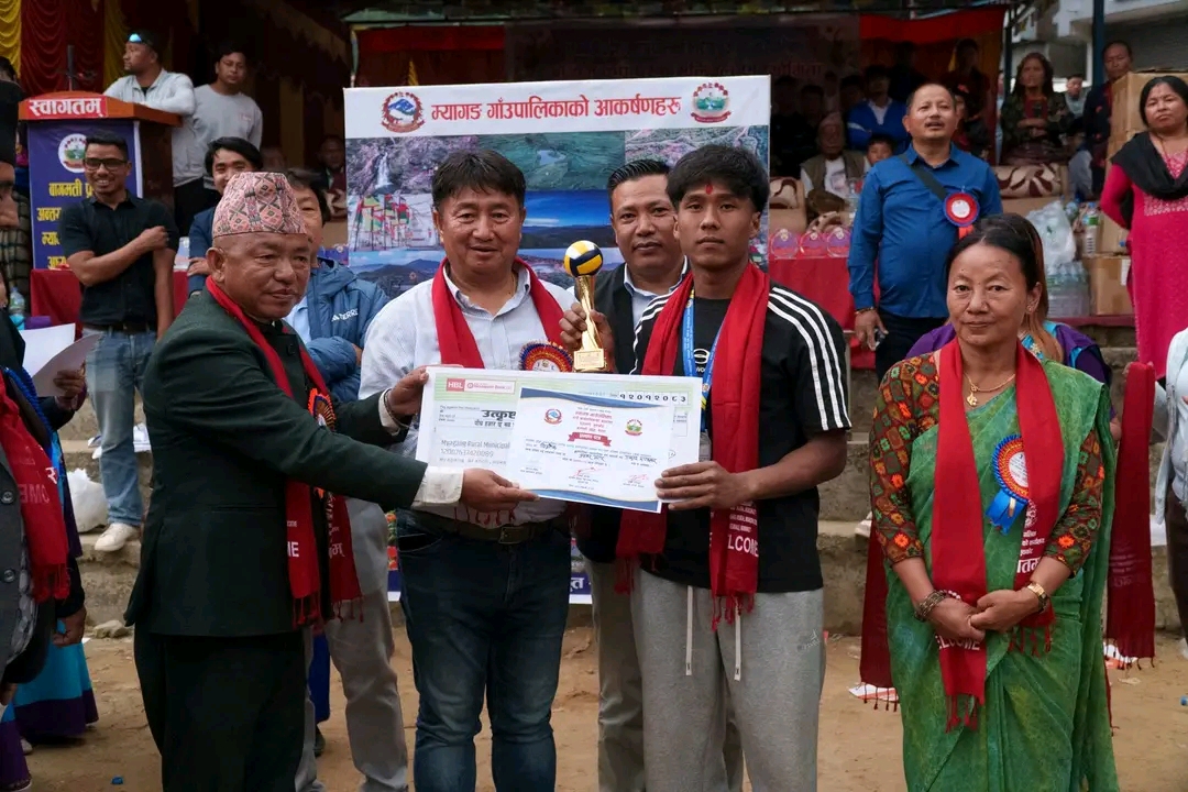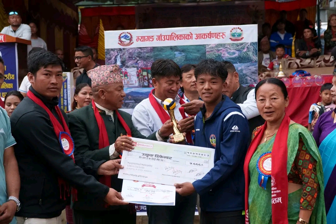 सो प्रतियोगिताको उपाधि विजेता खनियावास भलिवल टिमले सर्वाधिक ३ लाख ३४ हजार ४ सय ४४ रुपैया पुरस्कार प्राप्त गरेको छ । उक्त “अध्यक्ष कप भलिबल प्रतियोगिताको चौथो संस्करण म्यागङको जलपादेवीस्थित मैदानमा सन्चालन गरिएको थियो । प्रतियोगितामा उपविजेता सिद्धलेकले नगद दुईलाख २३ हजार तीनसय ३३, तृतीय स्थान जितेको नौकुण्ड गापाले नगद एकलाख १२ हजार दुईसय २२, सान्त्वना भएको आयोजक म्यागङ गापा भलिवल टिमले नगद ५६ हजार ६ सय ६६ रुपैया नगदसहित ट्रफी, मेडल र प्रमाणपत्र पुरस्कार पाएका छन् ।