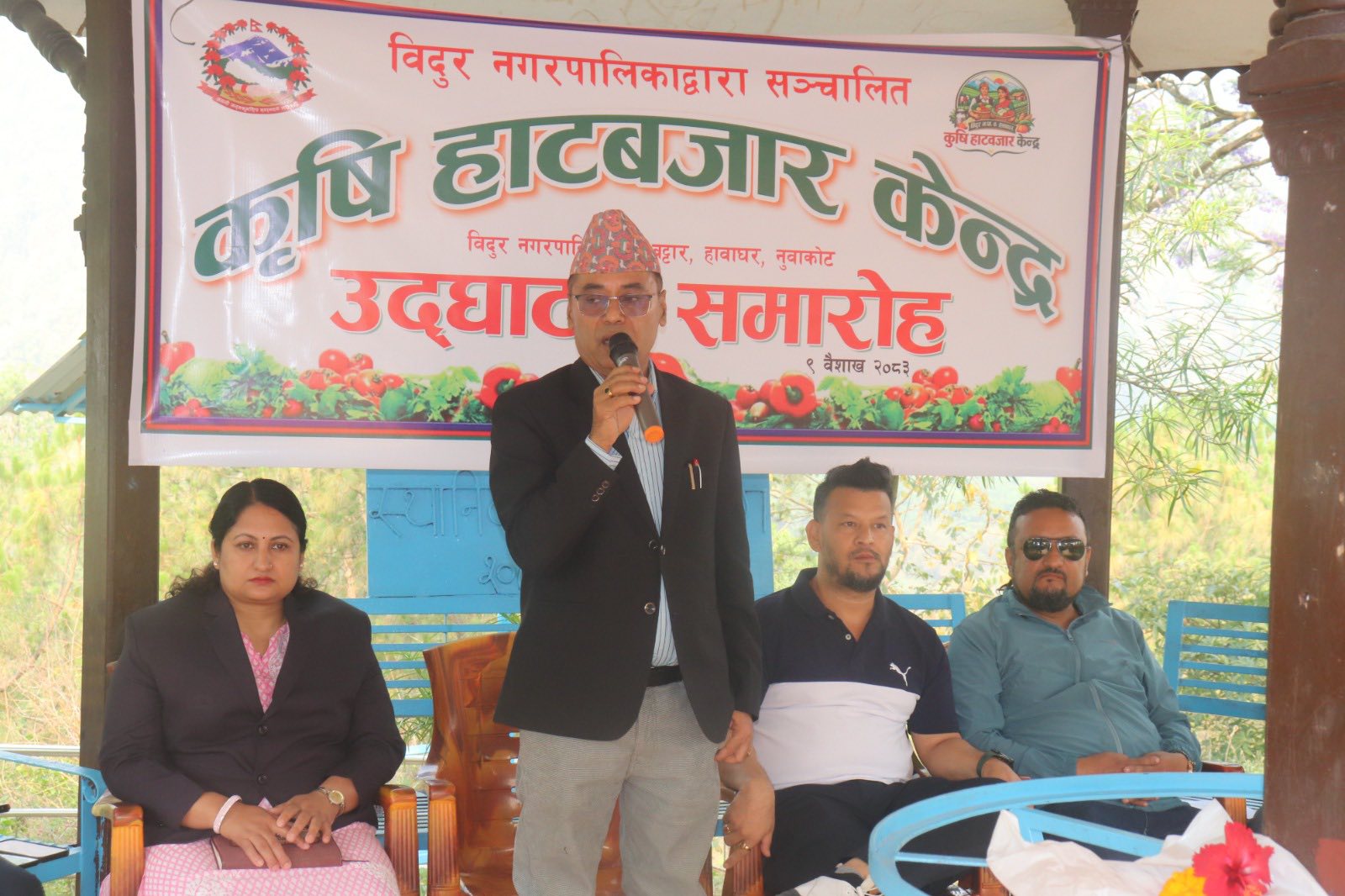 उक्त हाटबजार प्रत्येक आईतबार बिहान ७ देखि ११ बजेसम्म सन्चालन गरिने छ । यसअघि, उक्त हाटवजारको कार्यक्रमकाबीच बिदुर नपाका मेयर राजन श्रेष्ठले उद्घाटन गरेका हुन् । विदुर नगरपालिका मार्फत सञ्चालनमा रहने उक्त ’कृषि हाटबजार केन्द्र’ मा स्थानीय कृषि उतपादन, हस्तकला, घरेलु उद्योगको उत्पादनलाई सरल, सहज र सहुलियत दरमा उपभोक्ता समक्ष पु¥याउने उद्देष्यले सञ्चालन गरिएको मेयर श्रेष्ठले वताए ।