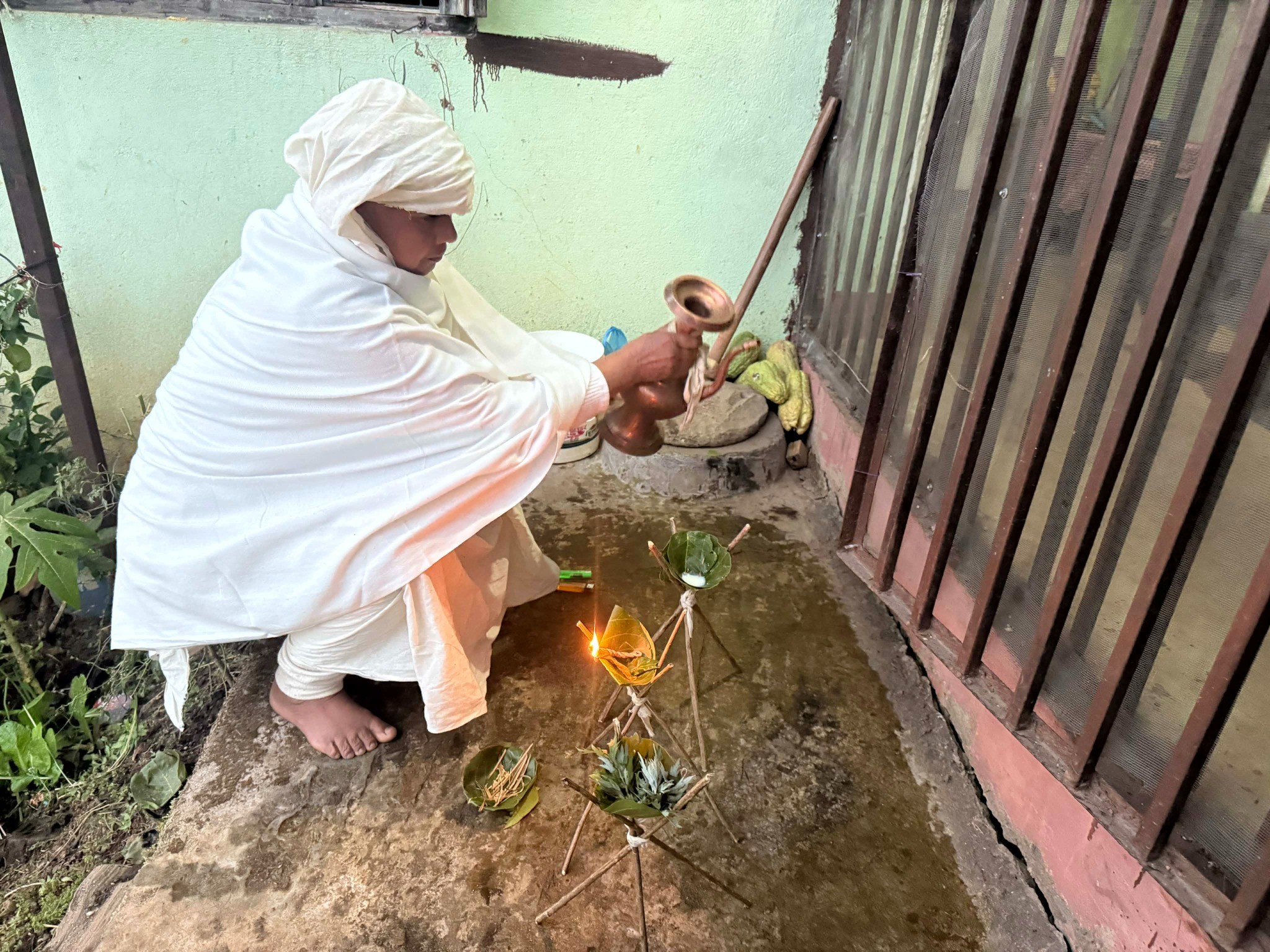 दिवंगत पिताको किरियाकर्म गर्दै छोरी