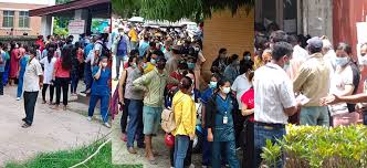 कोरोना खोप लगाउन ज्येष्ठ नागरिक घन्टौं लाइनमा