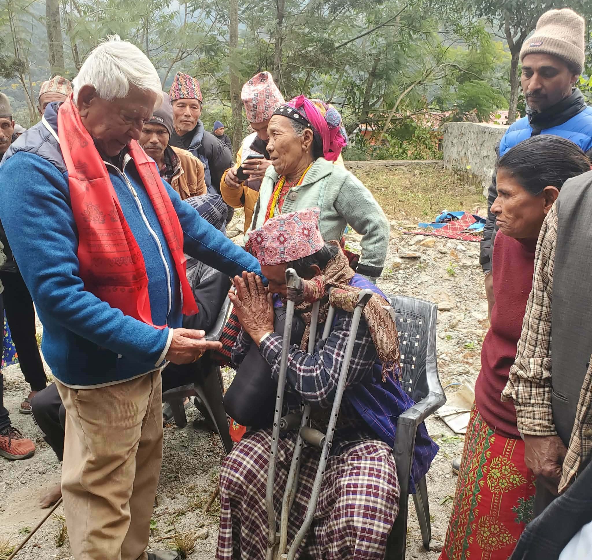 गाउंका वृद्धवृद्धालाई न्यानो कपडा